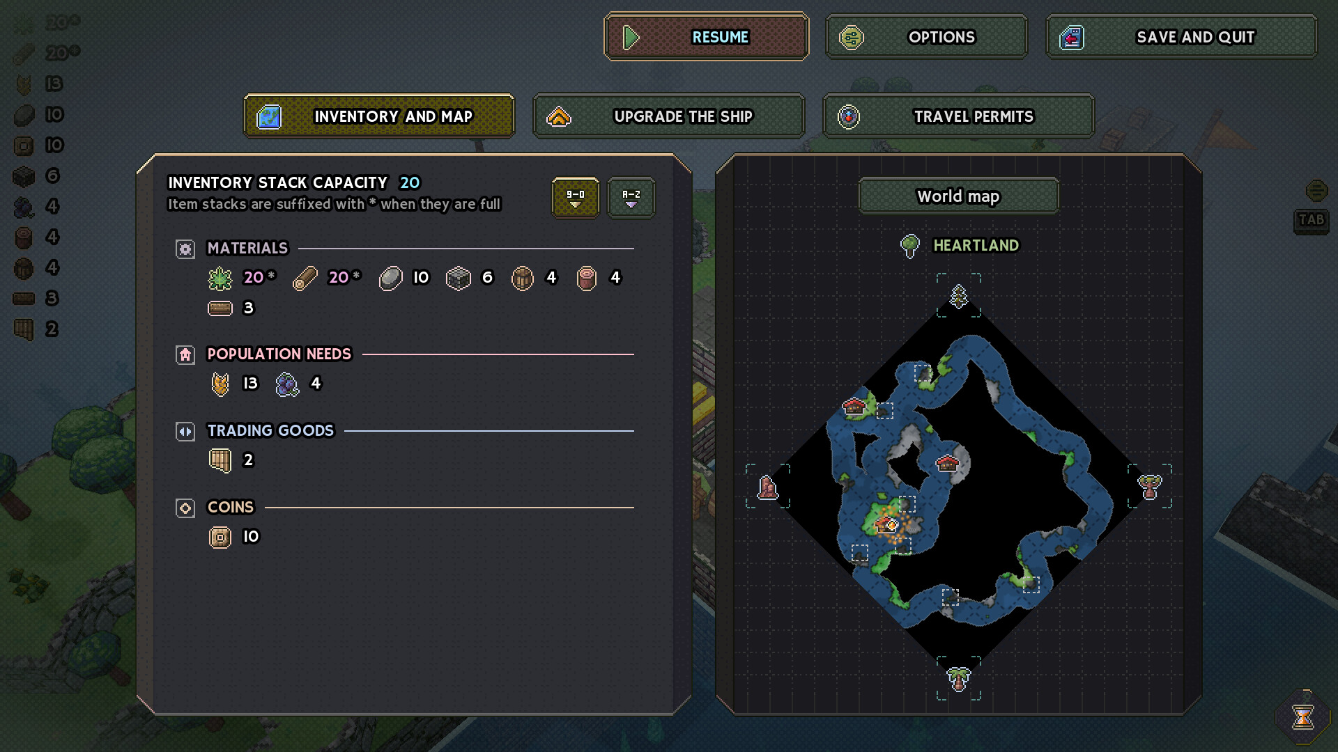 ↔️ Watch flows of resources while your ship and each city automatically exchange items from their respective inventory to have everything where needed