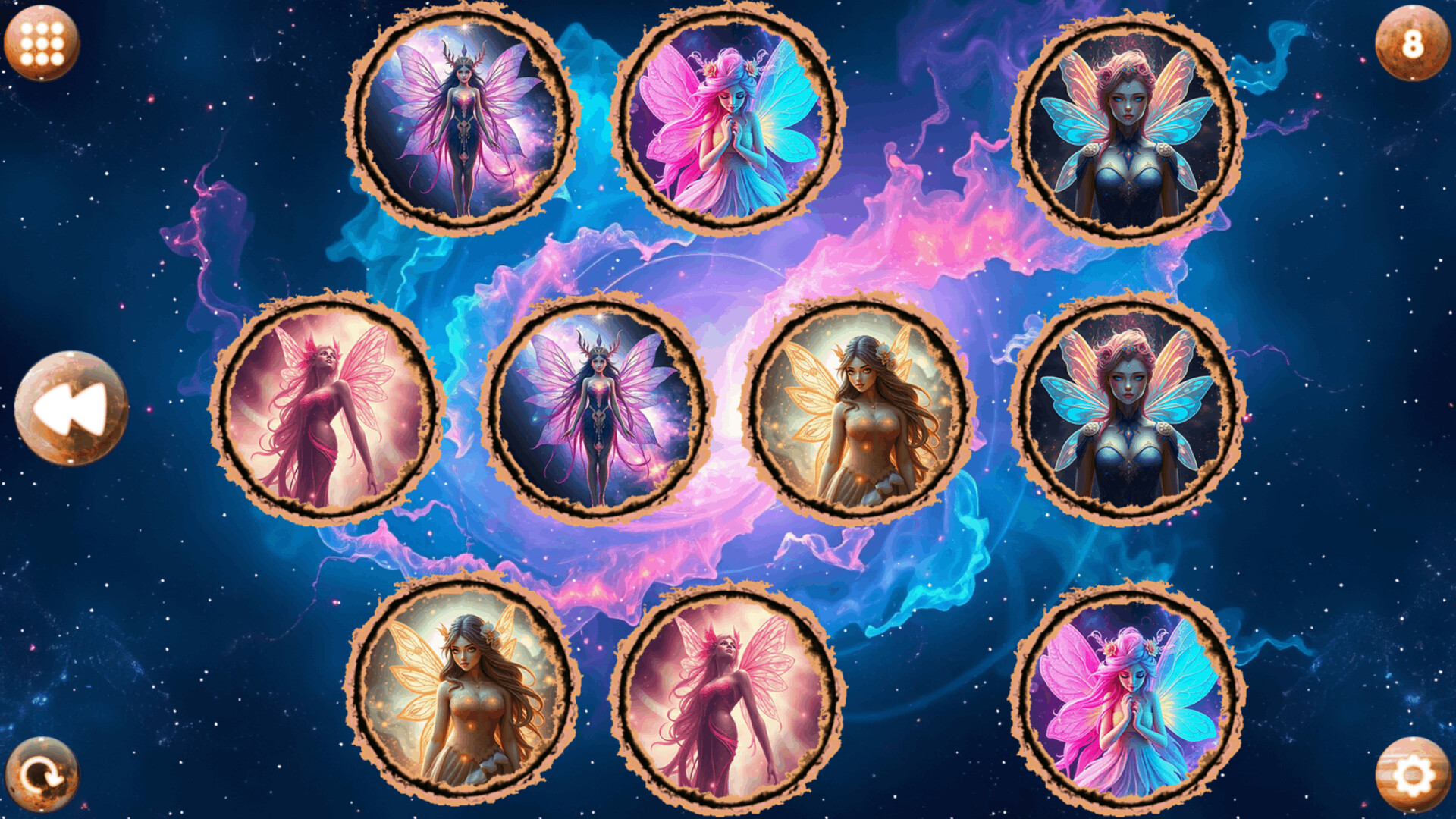 Space Memory: Fairies - is a cute and calming game featuring pictures of adorable fairies in space. This game will test your memory as you try to find matching pairs of owls pictures to complete each level.