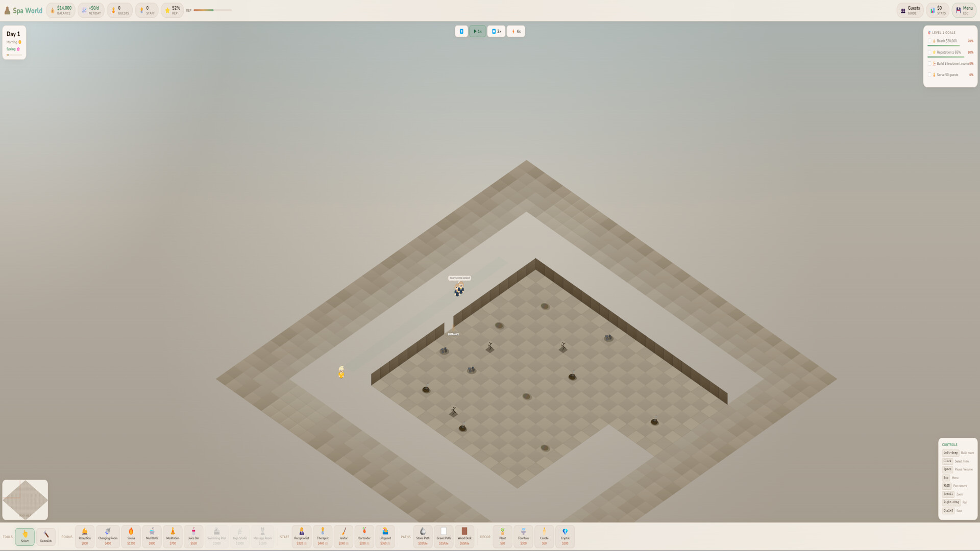 방을 배치하고, 돌 길을 깔고, 직원을 고용하고, 손님을 편안하게 해주세요.