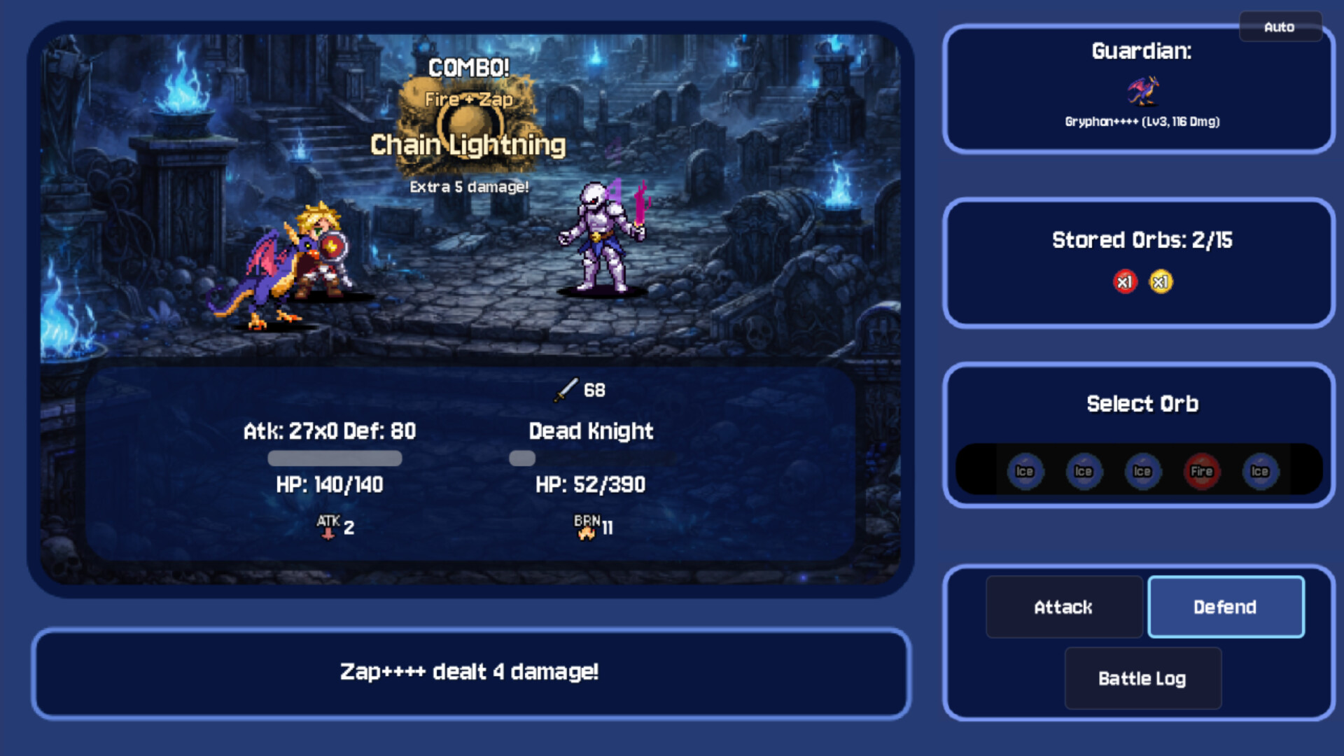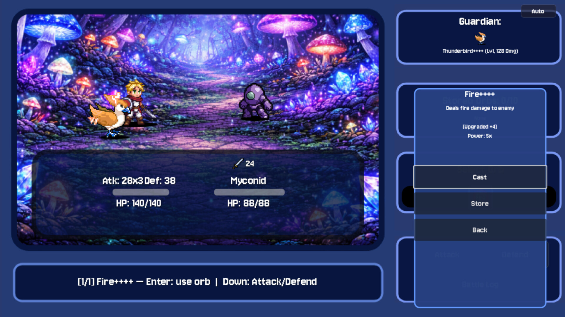 Aetherion is a turn-based roguelike dungeon crawler where every battle is driven by a randomised orb reel. Choose wisely, build powerful combos, and adapt your strategy as you descend through 23 handcrafted dungeon levels — including a hidden endgame challenge.