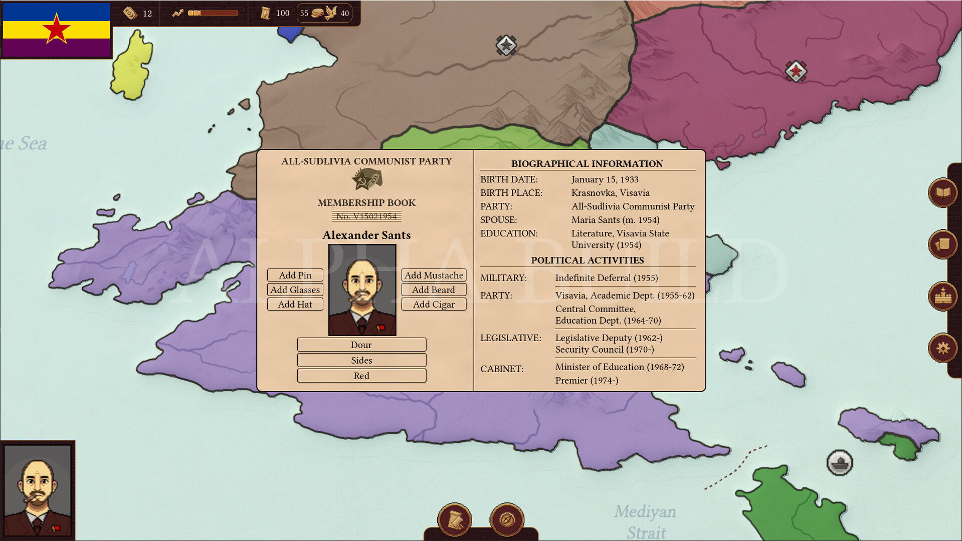 From his nationality to his role in the explosive Party Congress of 1966, determine how Alexander Sants rose to the highest levels of the Party and became prepared to lead Sudlivia in trying times.