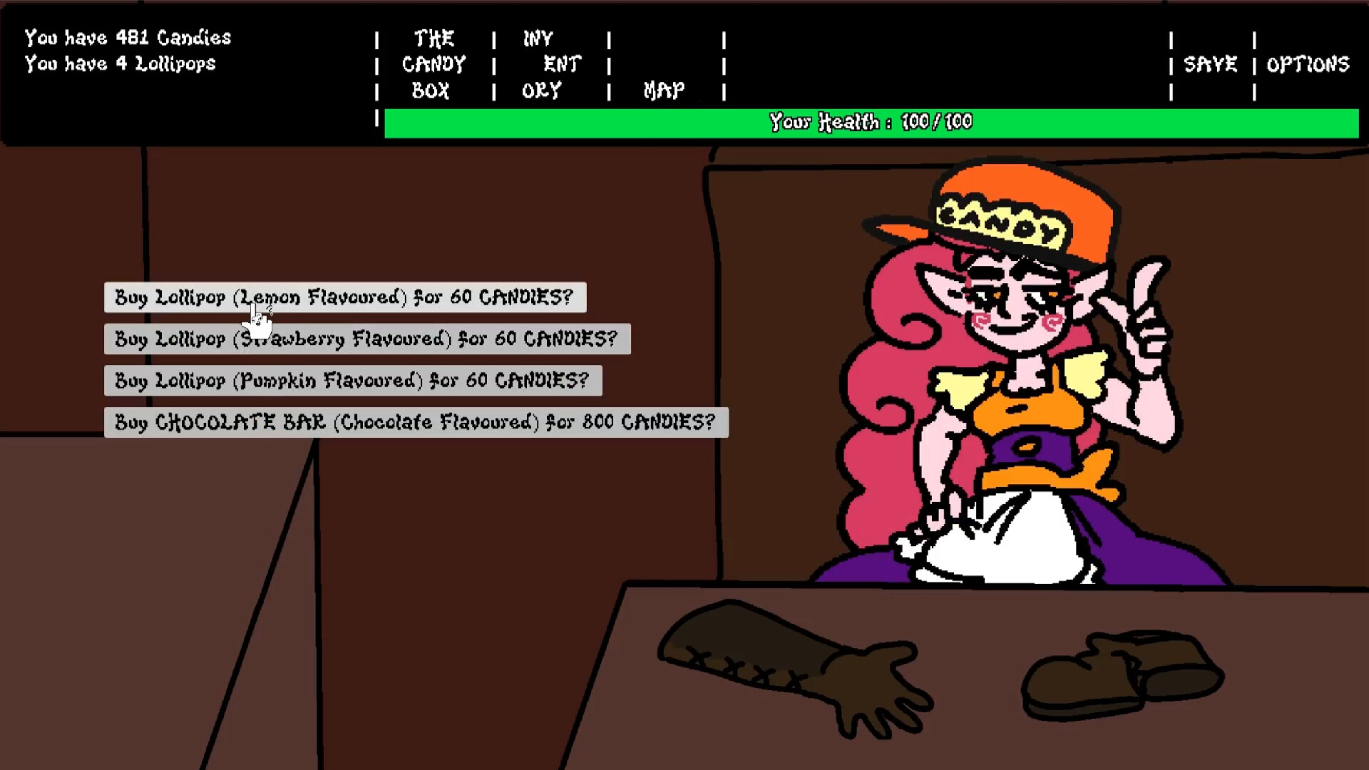 There's people here that need your help, monsters to slay and candy to discover. Your thirst for candy cannot be sated, and you will stop at nothing to become the Candiest Person In The WORLD.
