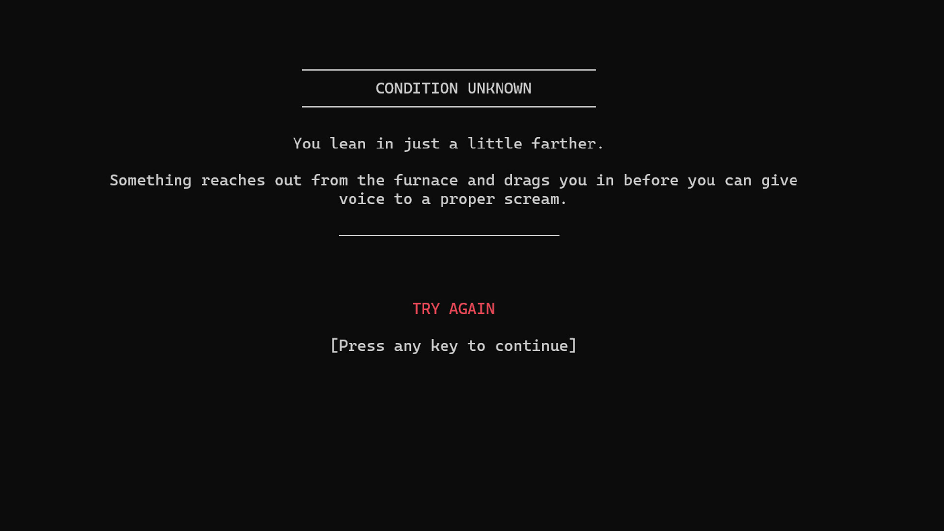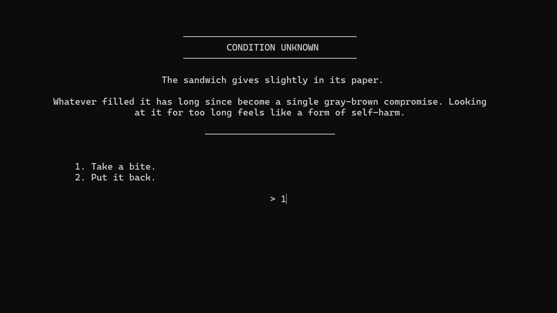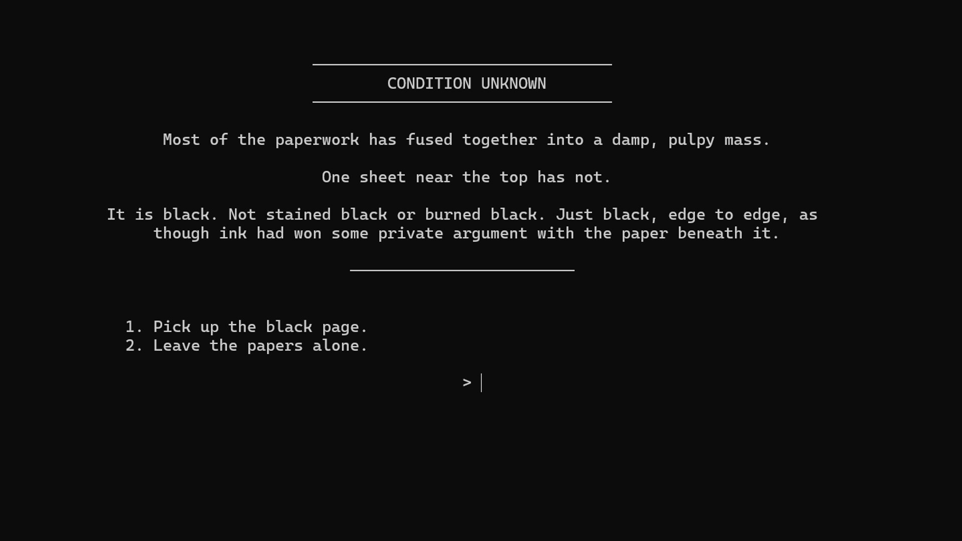 Condition Unknown is a text-based psychological horror game where you navigate a hospital that no longer behaves as it should.