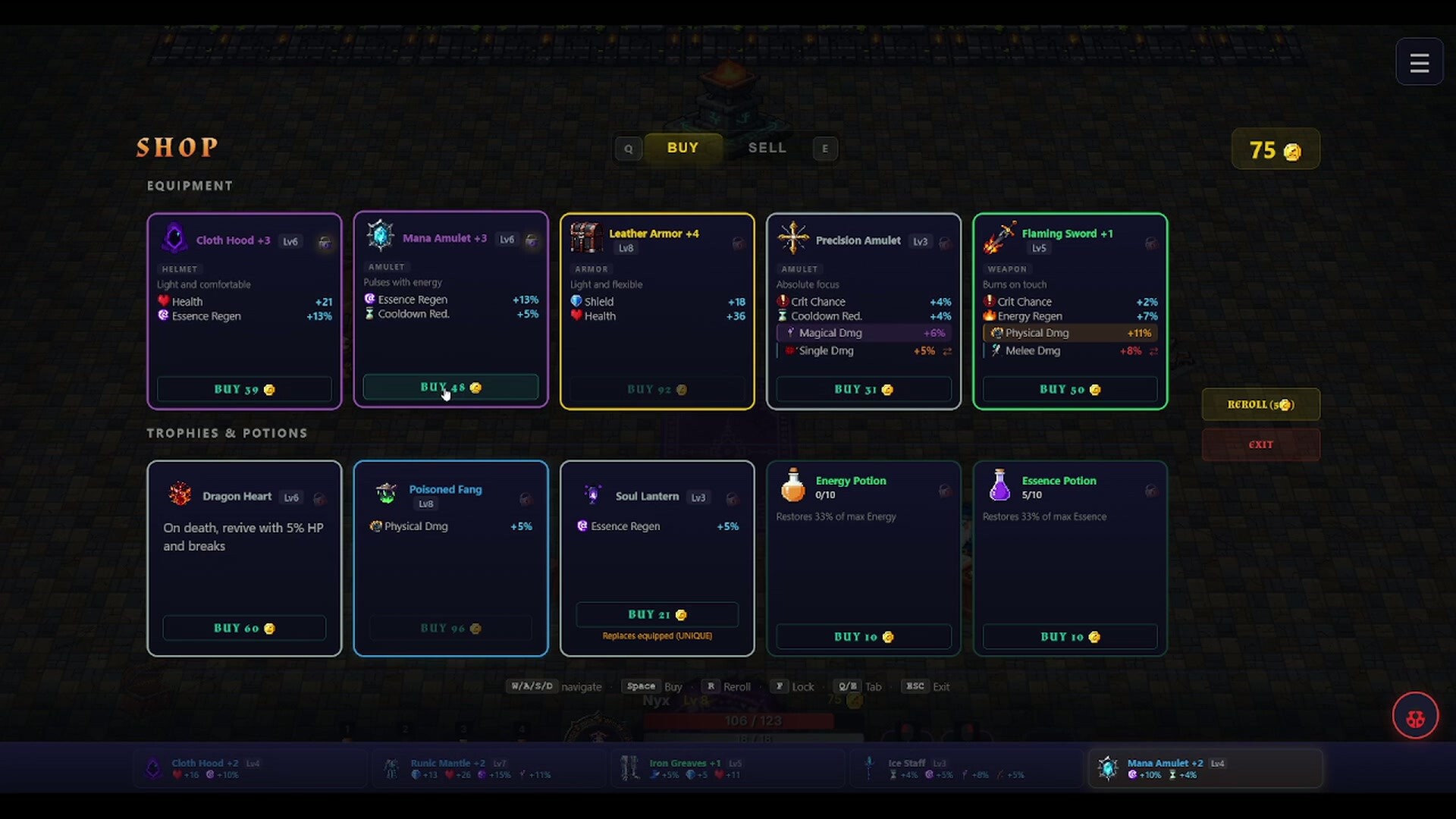 물리와 마법으로 나뉜 32가지 스킬. 데미지 보너스가 붙은 장비와 고유 효과를 가진 트로피. 각 영웅은 플레이스타일을 결정짓는 고유 패시브를 보유한다. 대장장이에게서 장비를 변환해 어떤 전략에도 대응하라.준비의 방