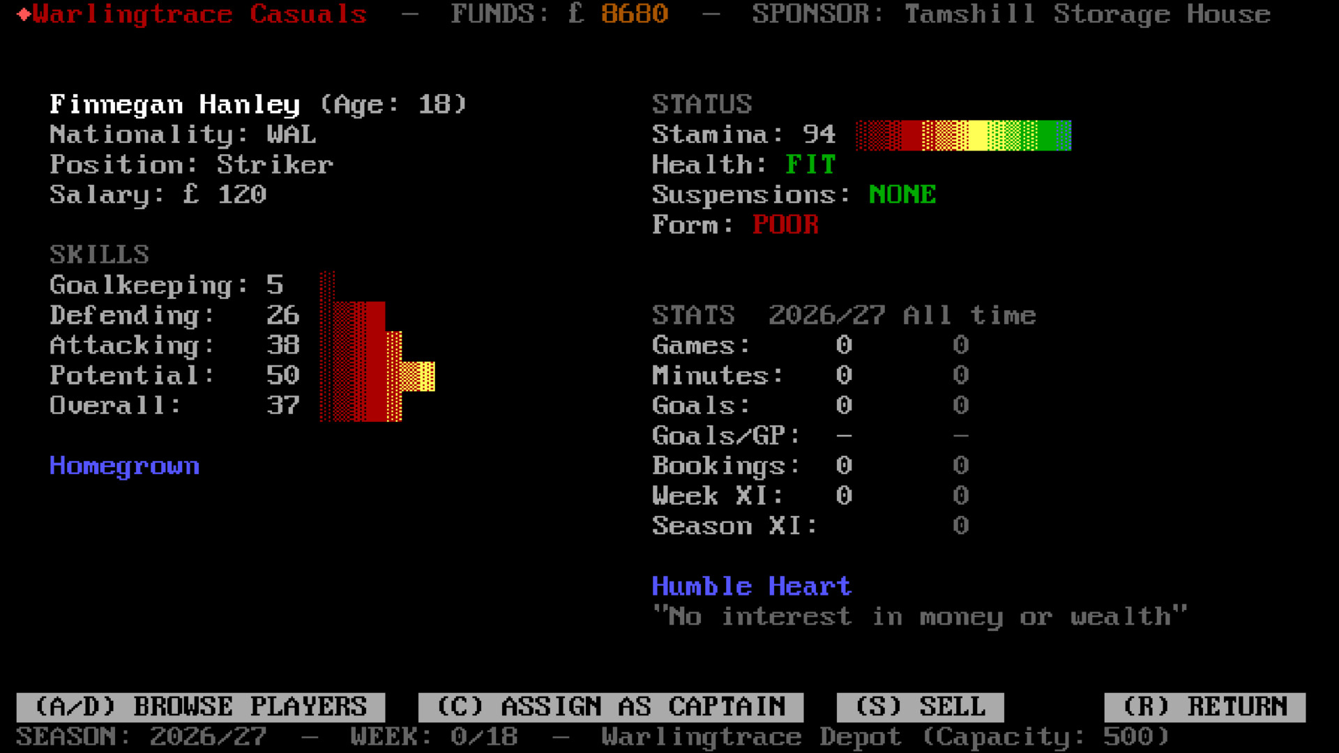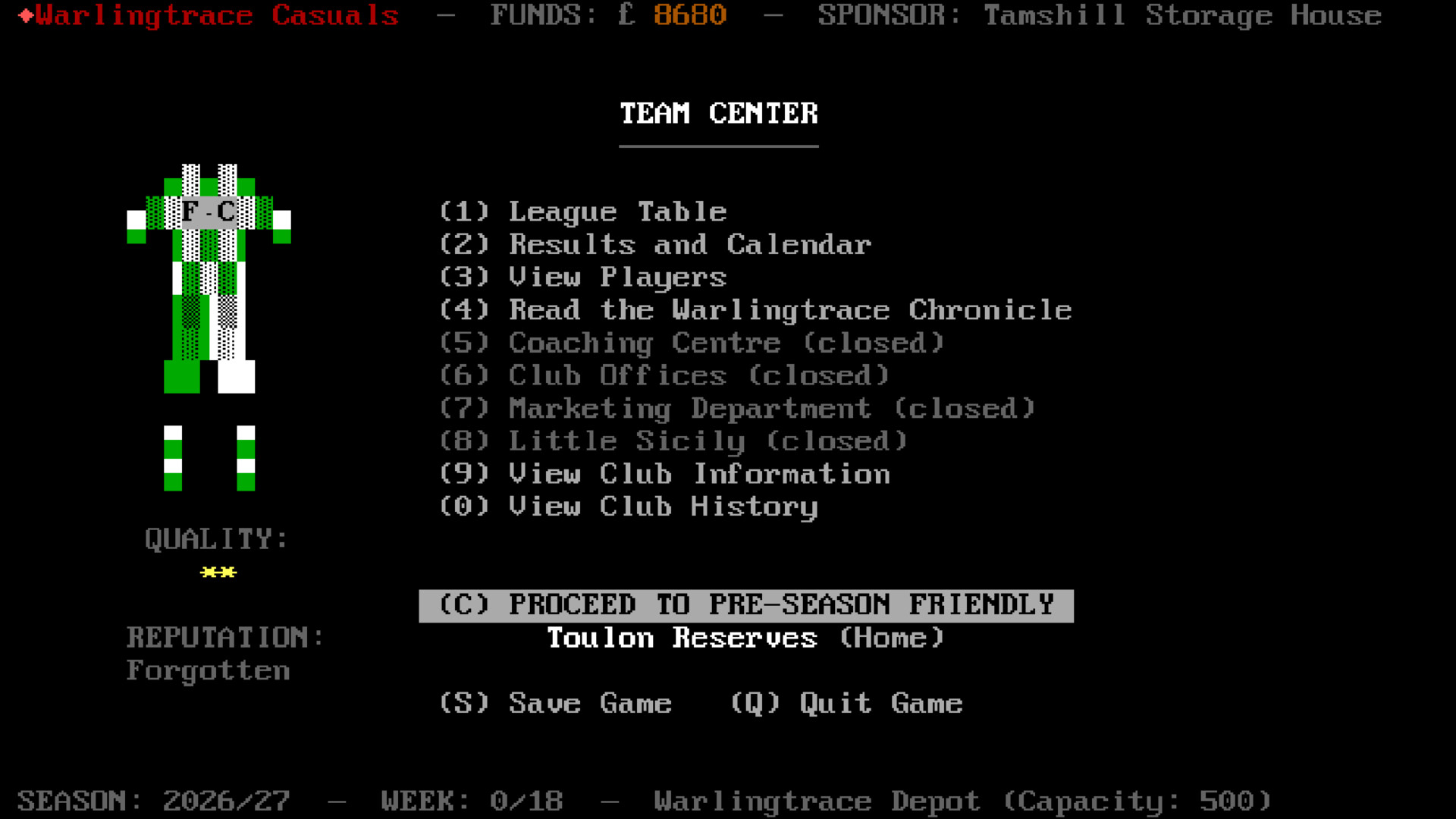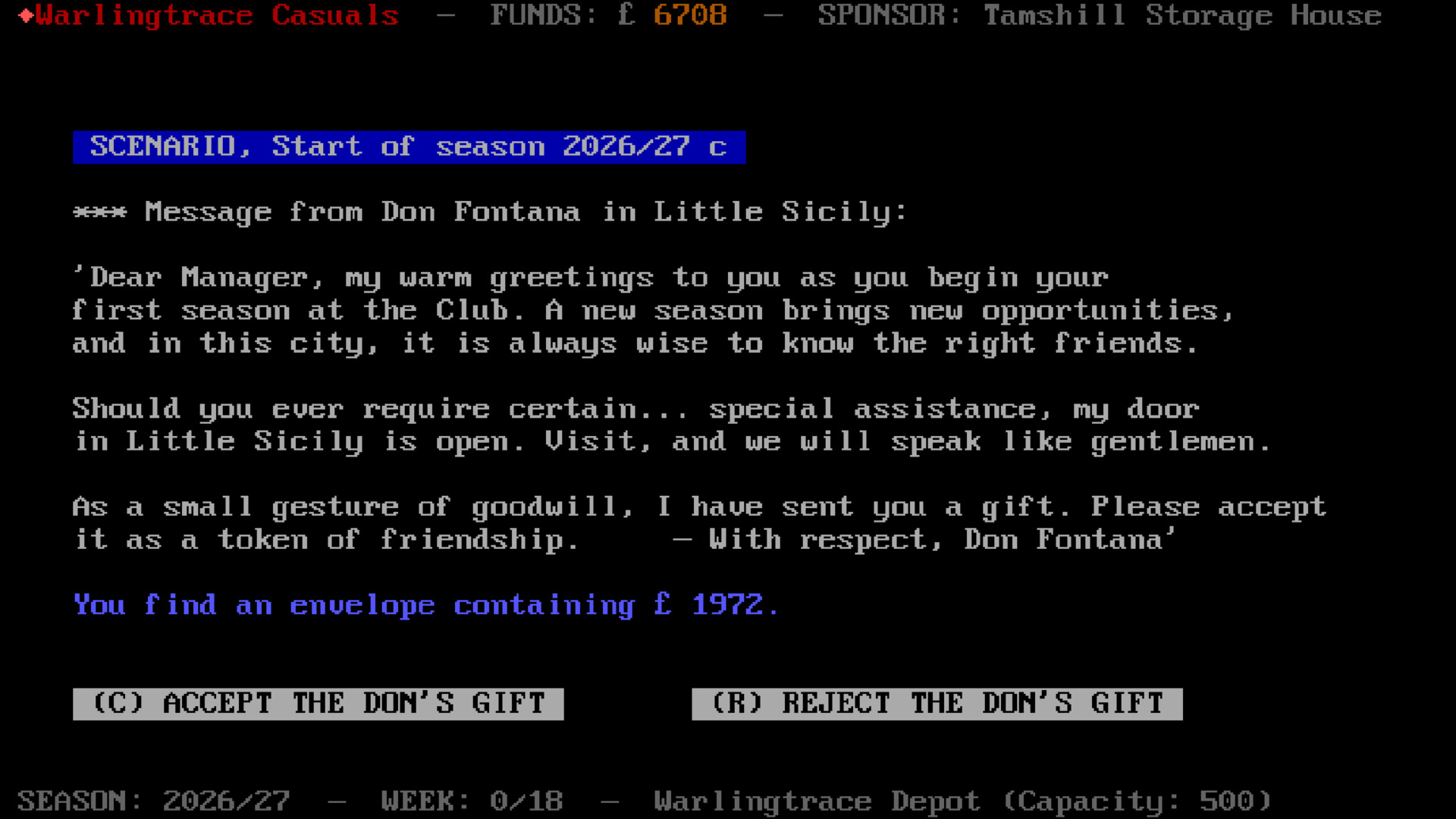 FC Mafioso: Football Dynasty Manager is a text-based football management game where you take charge of a small procedurally generated club and try to turn it into a long-term dynasty.