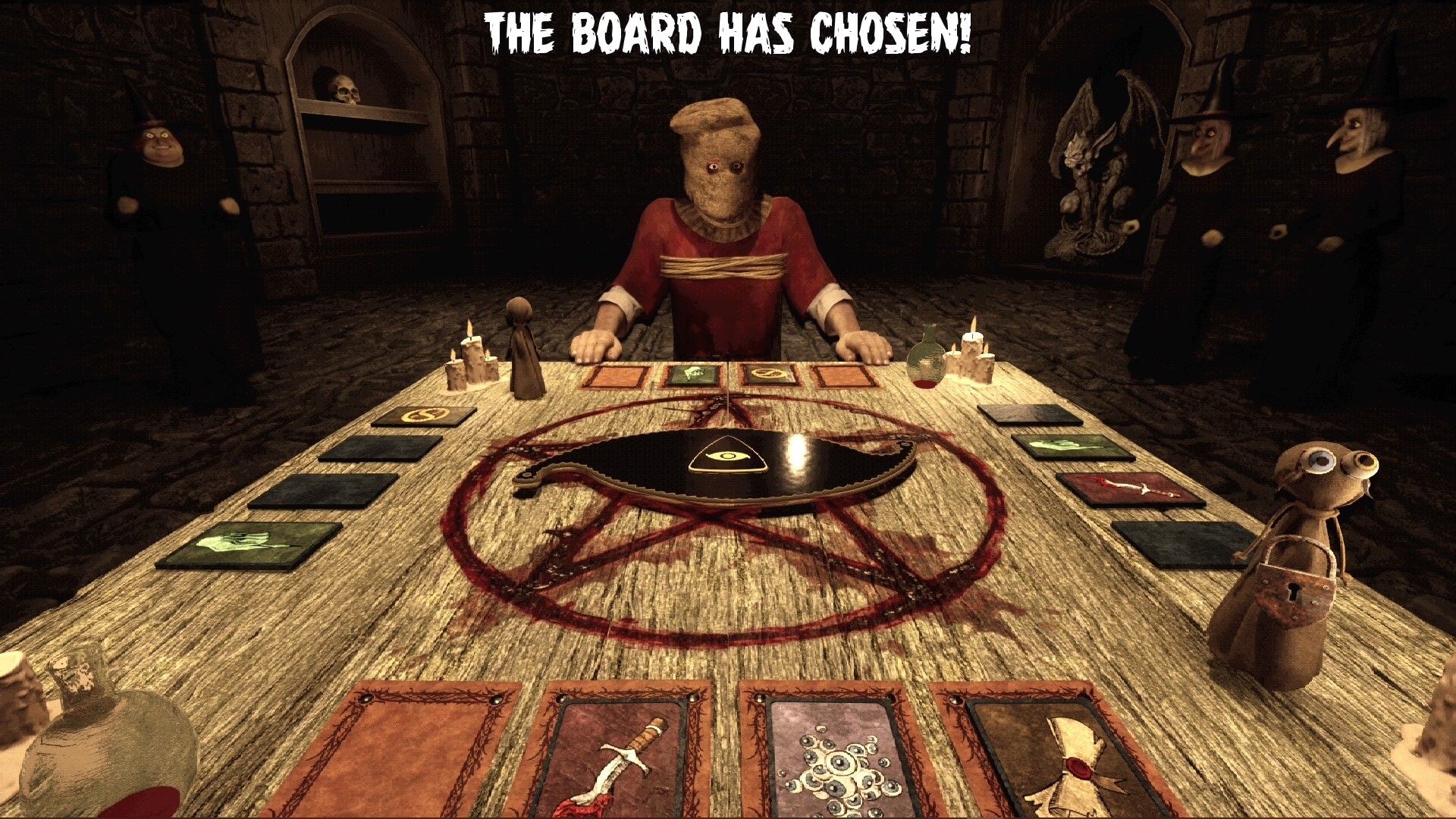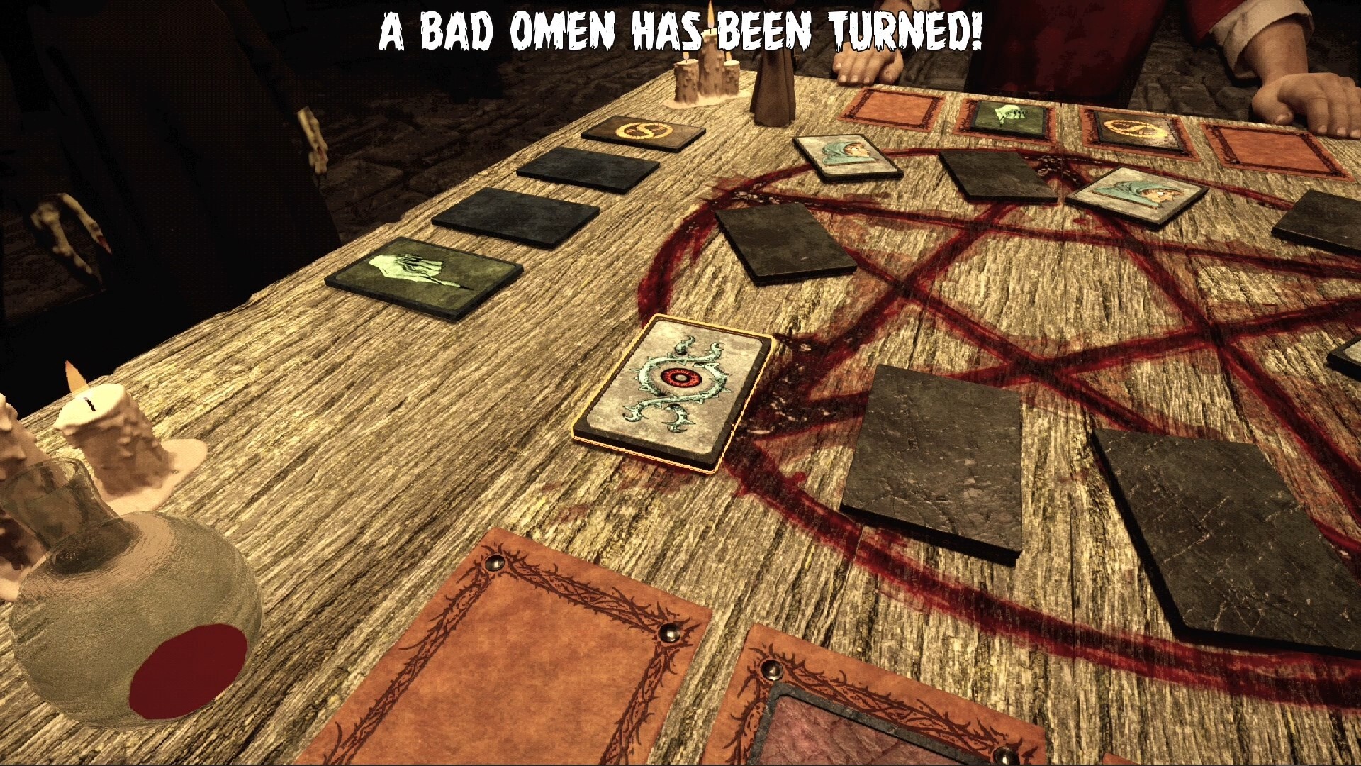 When the odds stack against you, bargain for Witches’ favors to tilt the odds or peer into the deck. But remember: Payment is in blood.
