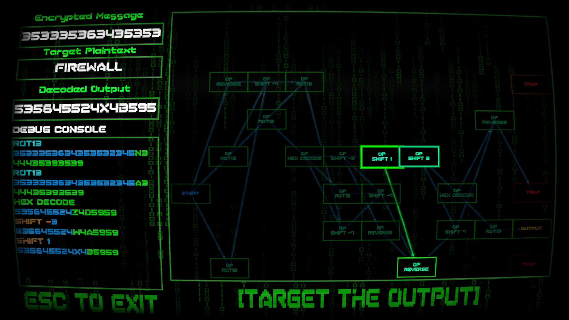 Hack your way through randomly generated node based puzzle gameplay deciphering codes that get progressively more difficult as you play. Tons of different codes to crack with hidden Easter eggs to find.