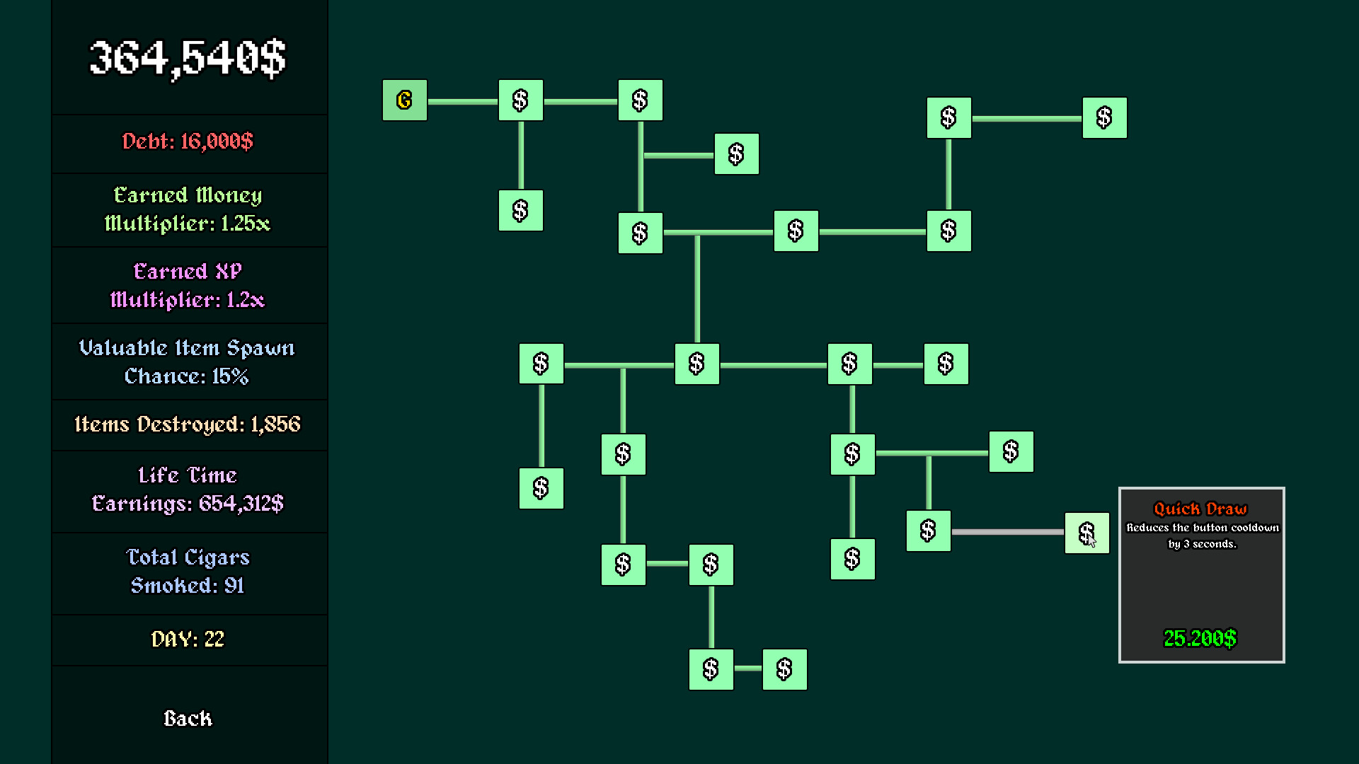 매일 아침 빚은 더 무거워지고 기회는 더 커집니다. 균형을 유지하고 수입을 늘리며 사장을 진정시키세요. 빚을 너무 오래 미루면 해고됩니다!