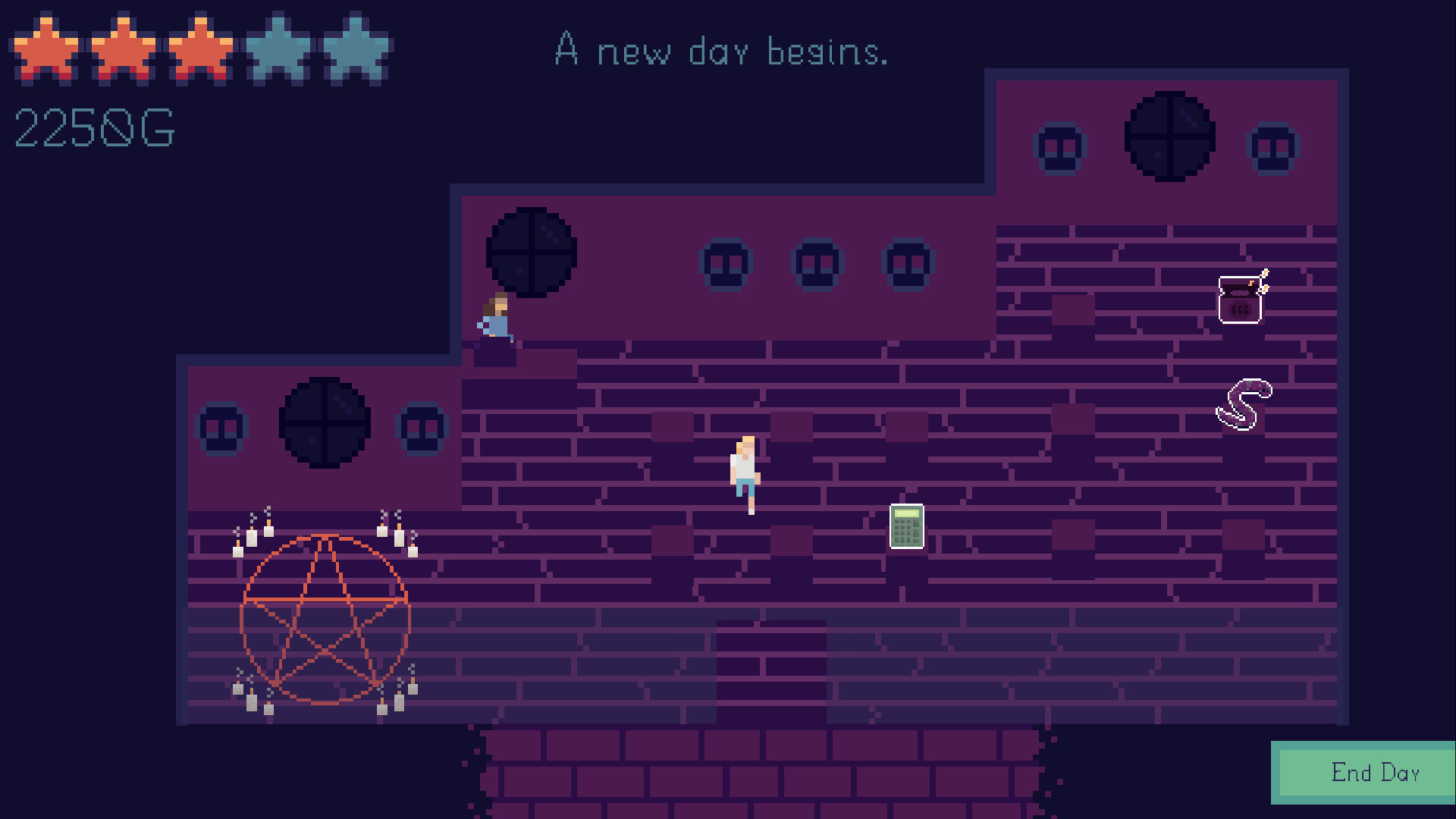 By night dive into the dark corners of the web to hunt for new stock, inspecting item listings to separate the weird from the dangerous and using your earnings to upgrade your shop to your liking.