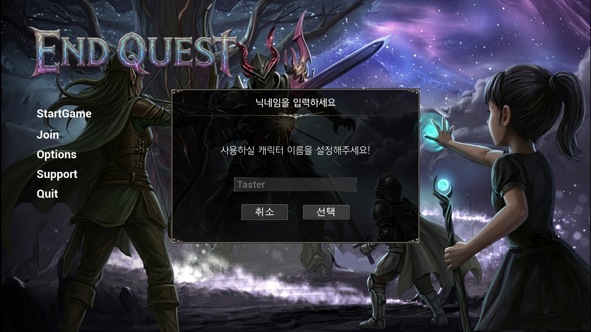 END QUEST는 3인이 한 팀으로 퀘스트에 도전하는 쿼터뷰 협동 액션 RPG입니다.