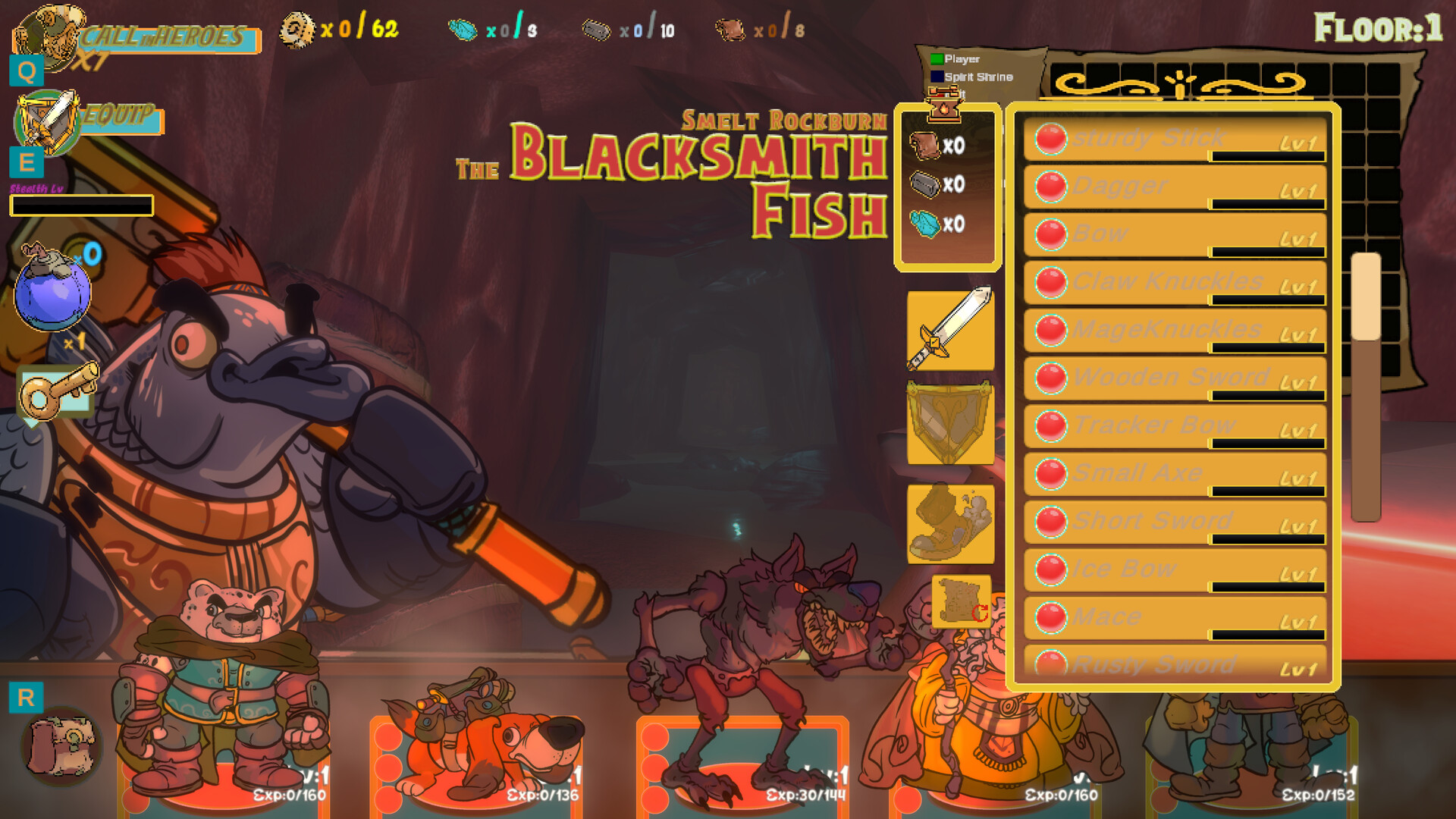 대장간 방문: 수집한 재료를 대장장이 '스멜트(Smelt)'에게 가져가 자신의 플레이 스타일에 딱 맞는 맞춤형 장비를 제작하세요.