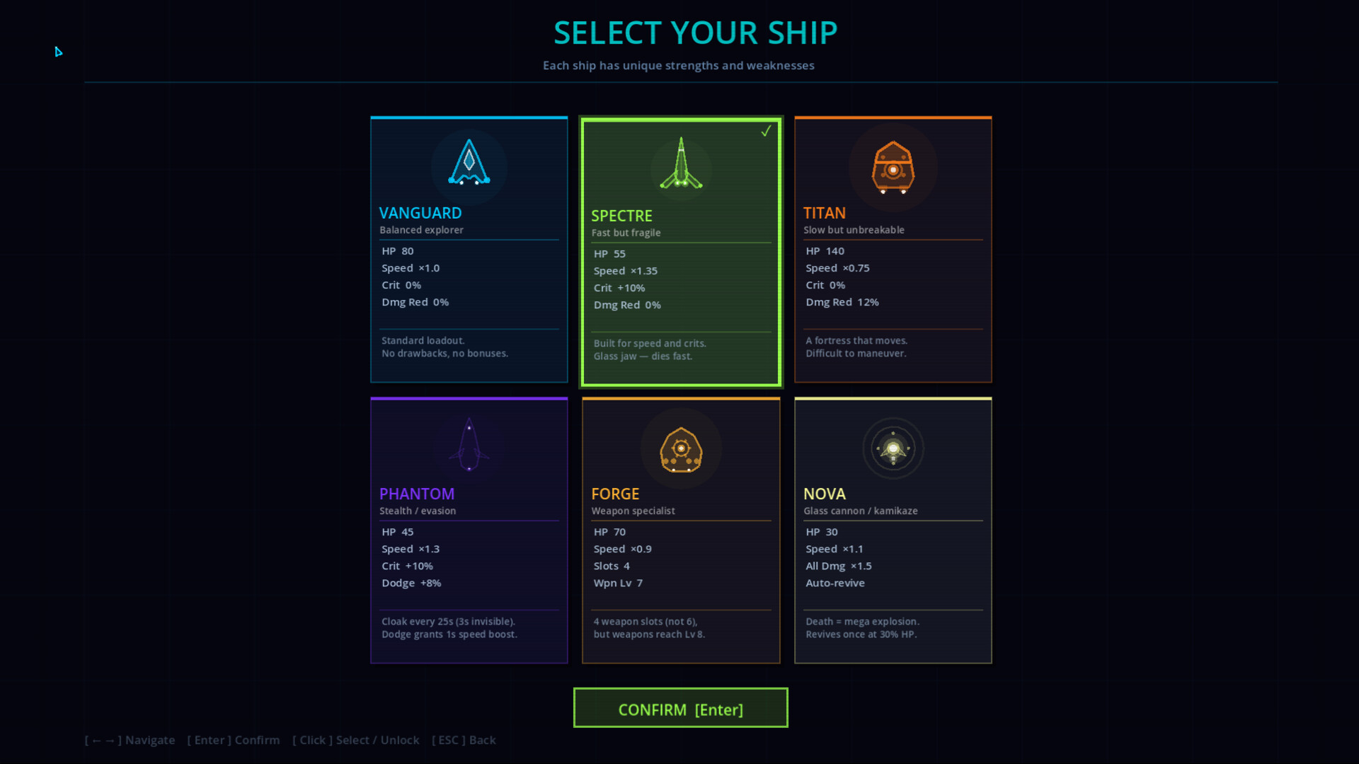 펄스 캐논에서 섬멸 광선까지 7가지 강력한 진화를 가진 15종의 고유 무기. 18가지 패시브 능력. 빌드를 은밀하게 변형시키는 25가지 이상의 숨겨진 시그널 레조넌스 시너지. 6척의 개성 있는 함선. 원하지 않는 업그레이드를 추방하고, 더 나은 선택지를 위해 리롤하며, 완벽한 런을 만들어라.