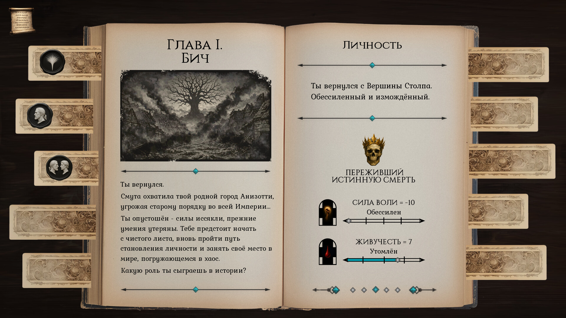 Explore the Blessed Arknian Empire at the moment of its disintegration — a land where faith no longer unites, laws are losing their power, and ancient prohibitions no longer hold.
