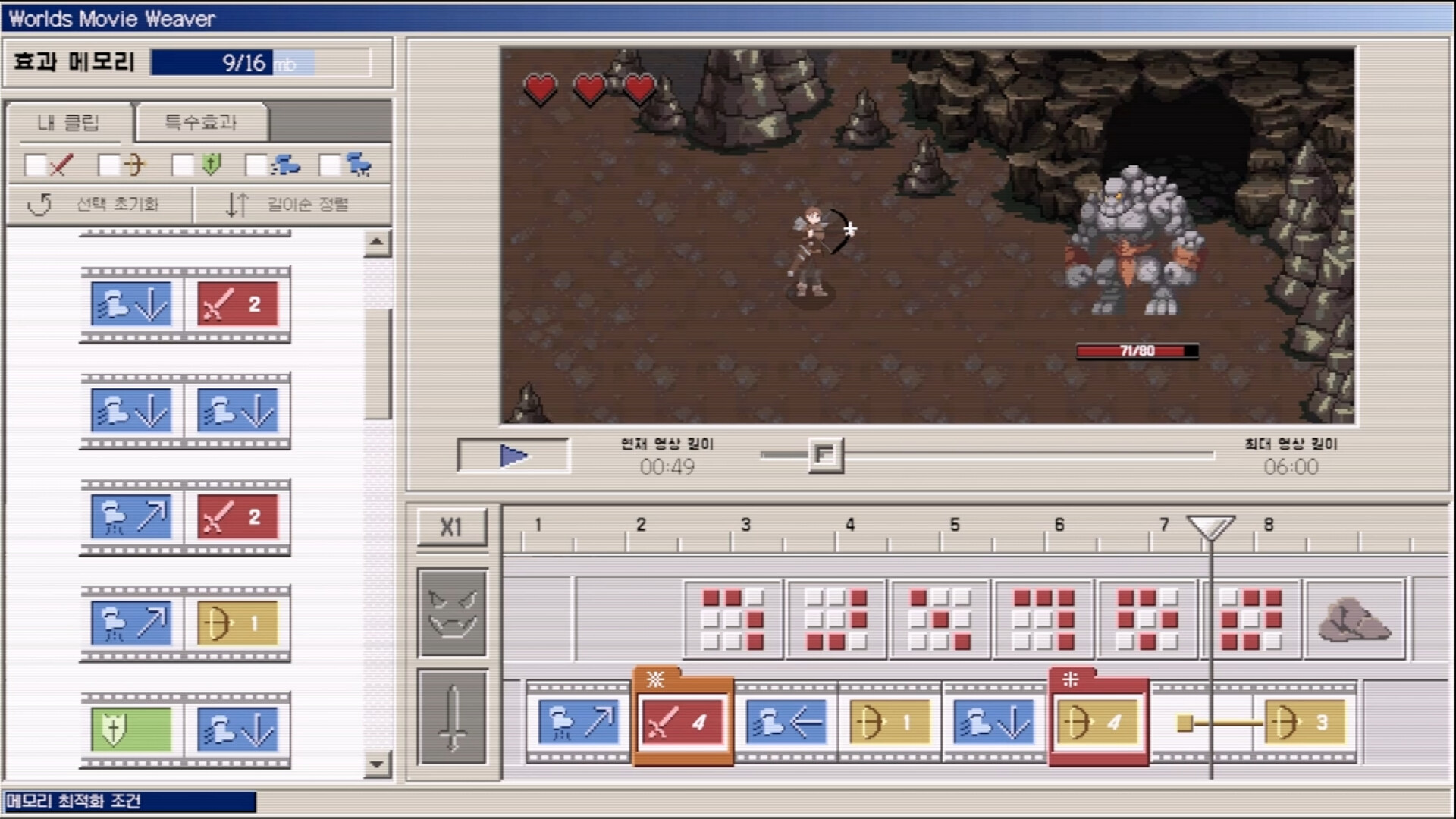 메모리가 너무 적다고요? 걱정하지 마세요! "타임라인 모두 채우기", "유효 공격 2회 이상", “피격 없음” 같은 최적화 조건을 달성하면 사용할 수 있는 메모리가 증가합니다.