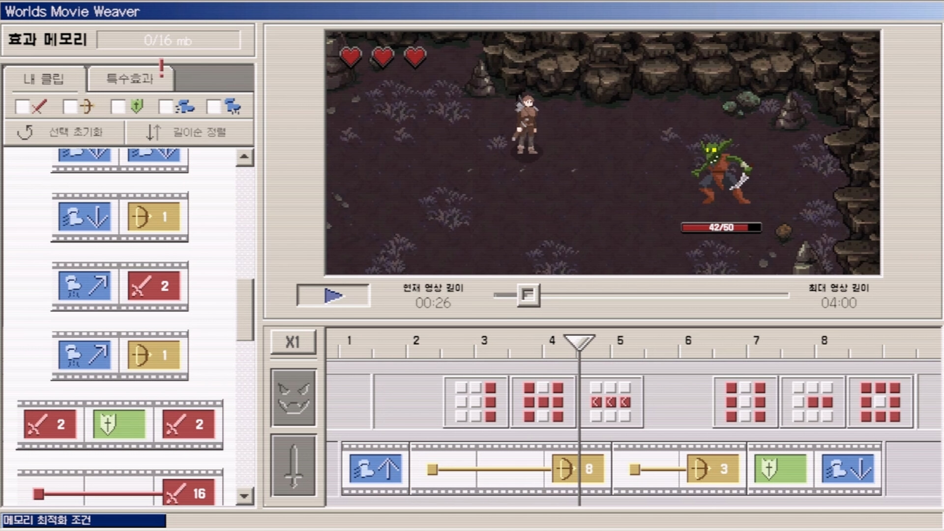 영상 편집기에는 적의 공격 패턴과 방해 행동이 미리 녹화된 상태로 제공됩니다.