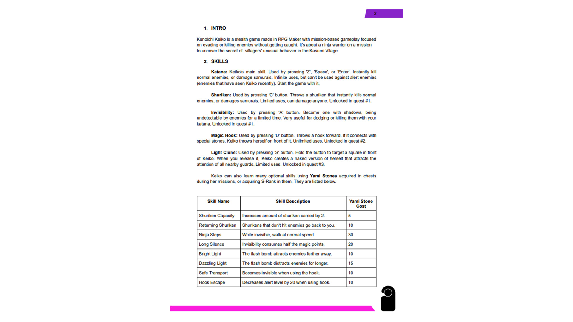Kunoichi Keiko - Guide is a spoiler document with all the detailed information you need to complete the game and unlock all Steam achievements.