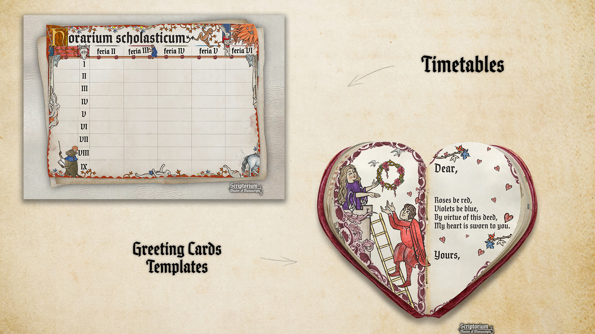 Because art is the beating heart of Scriptorium, buying the soundtrack will also get you an Art Pack full of eclectic goodies you can use in real life, including: