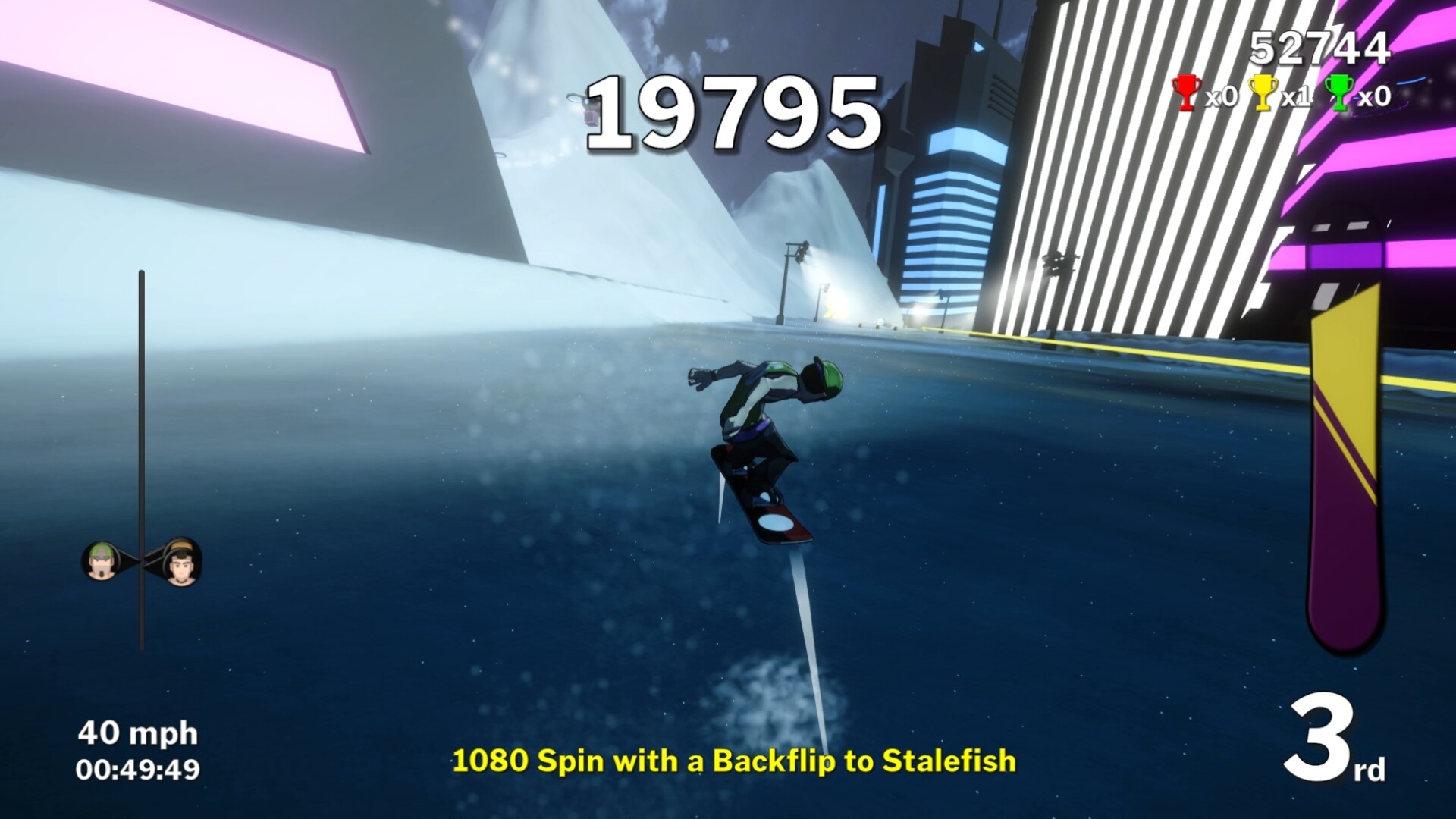 예티 마운틴 스키 패트롤의 팁: 트릭을 제대로 착지하세요. 눈은 보기만큼 부드럽지 않습니다; 얼굴부터 부딪히고 싶지는 않을 겁니다. 반드시 보드가 발 아래에 있도록 하고, 모든 버튼에서 손을 떼어 완벽하게 착지하세요.