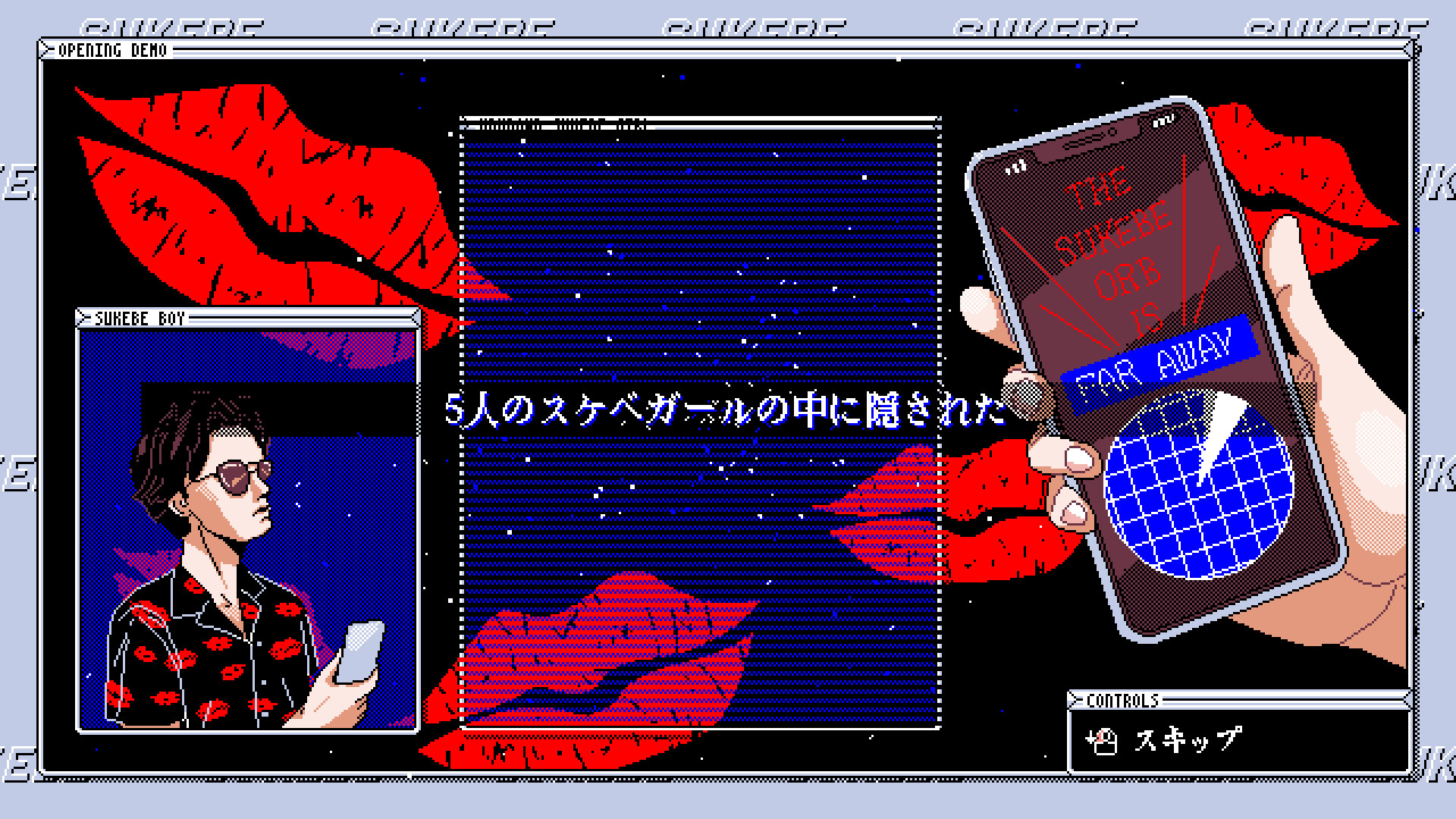 The protagonist, SUKEBE Boy, sets out on a journey to find the SUKEBE Orb hidden in the body of SUKEBE Girl...