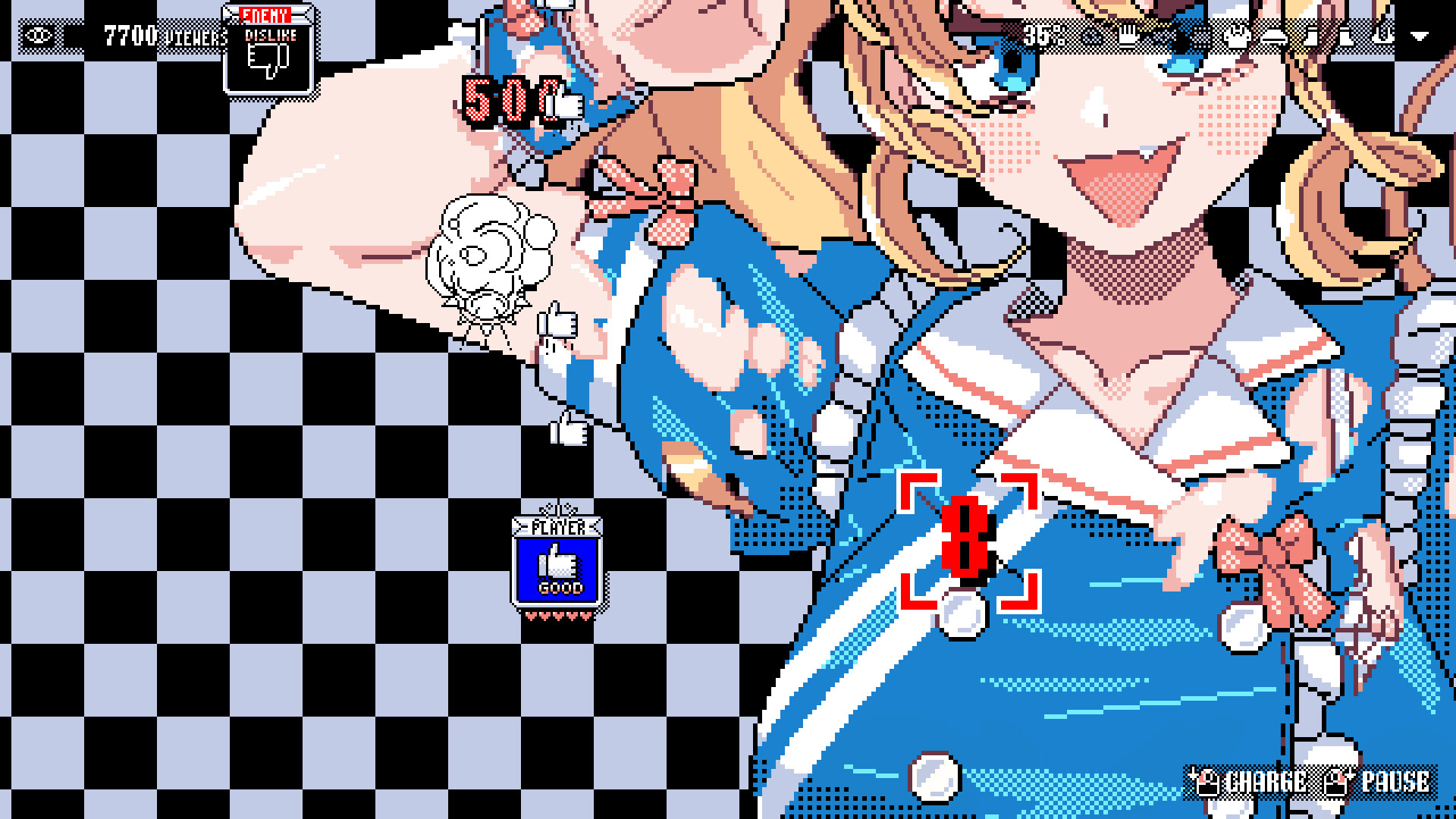 Controls are simple! Use automatic and charged shots to defeat the Dislikes who appear during SUKEBE Girls' SUKEBE streams!