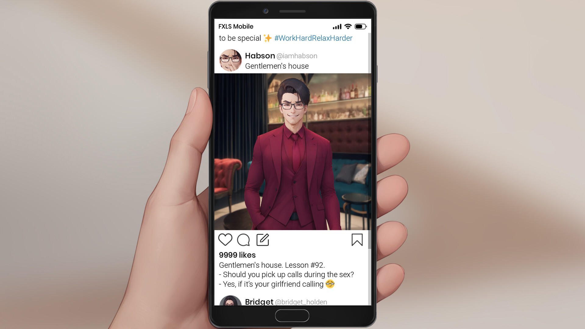 Dive into conversations — chat, flirt, or push boundaries. Explore characters’ lives through an in-game social media app.