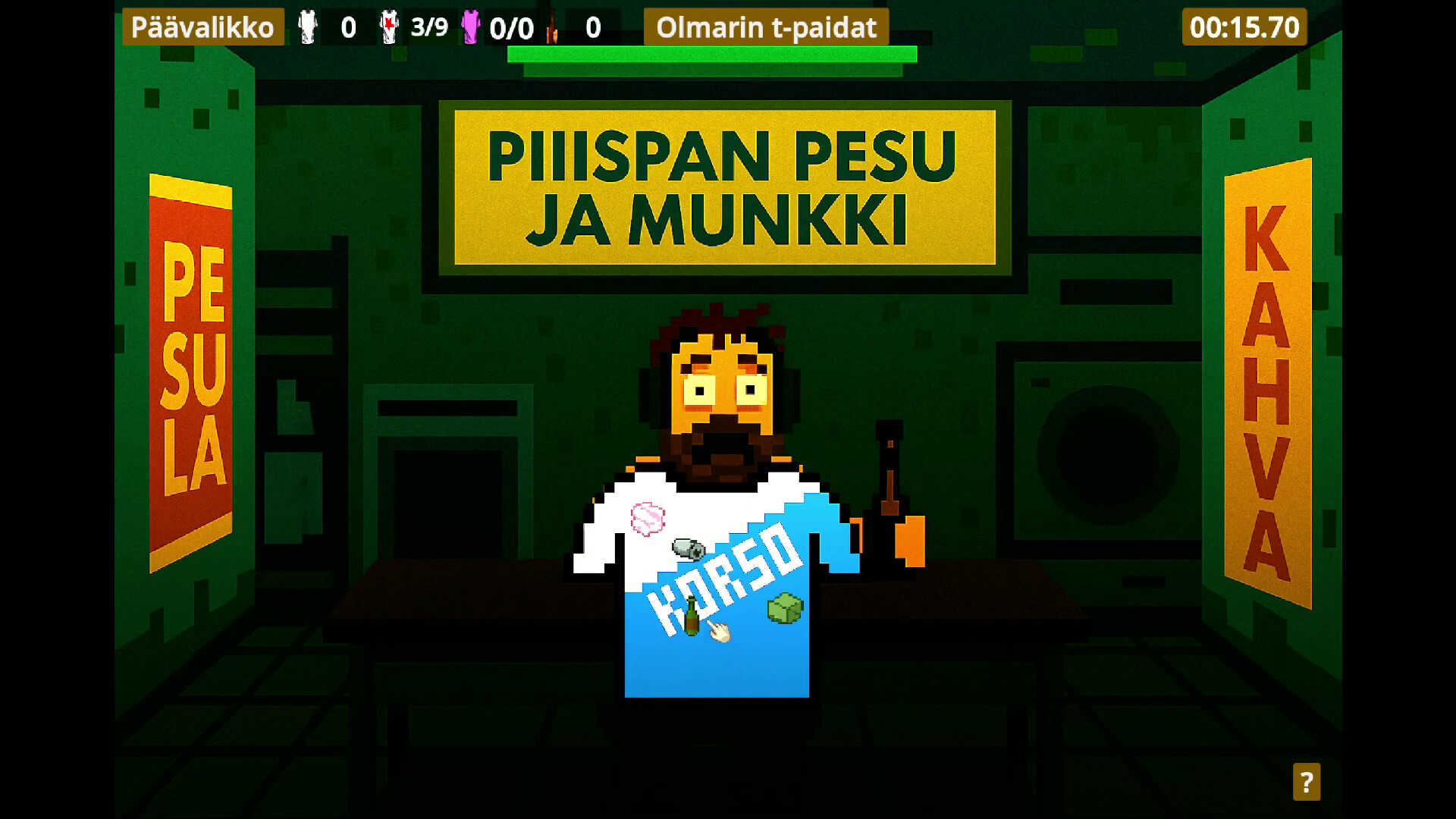 Player is given different scenes where you need to find every unique t-shirt and win the challenges to make Olmari progress further, maybe you even can find some secrets...
