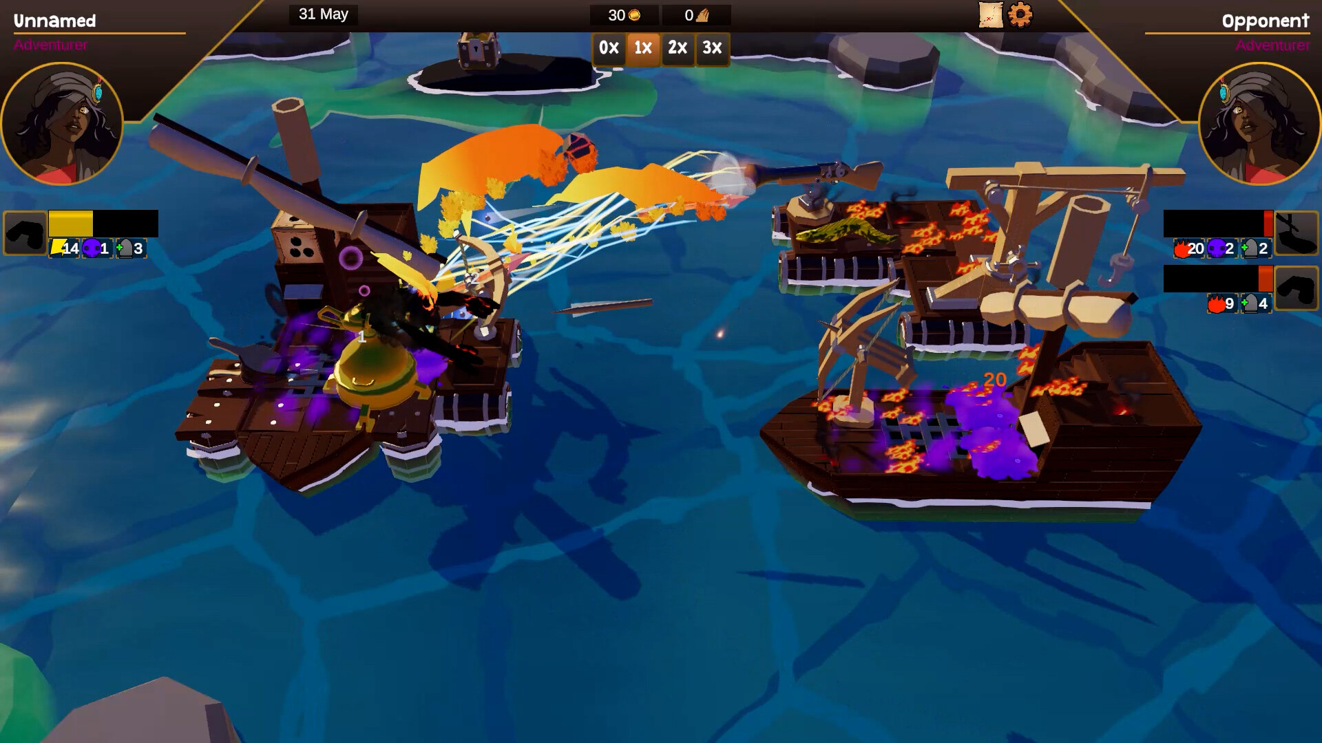 Interact with a variety of encounters both friendly and not - explore uncharted waters and uninhabited islands, trade items and confront the dangers of the seas.