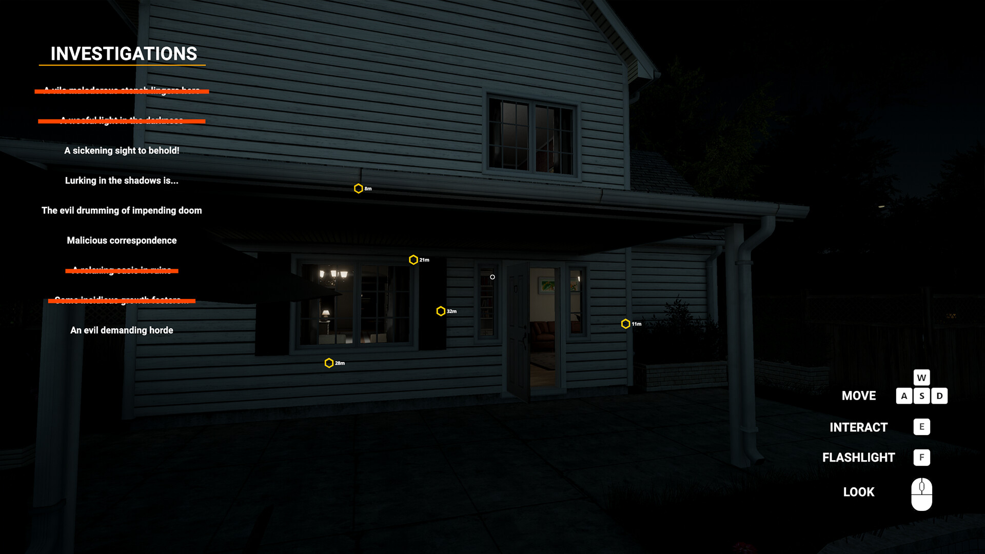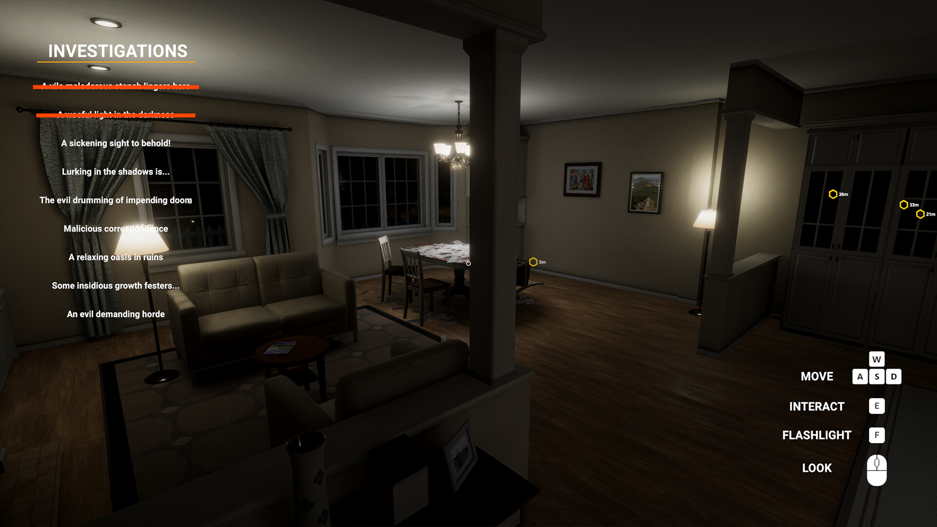 Explore the full 3D environment in a First Person view as you use your flashlight and keen powers of observation to check items off your investigation list.