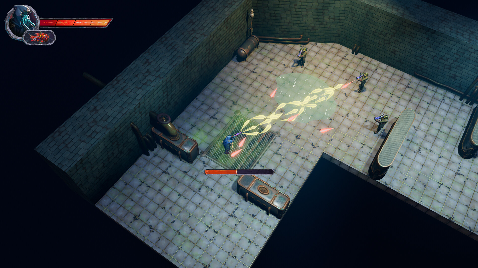 BioRogue is a 3D twin-stick Action Roguelite with intense bullet hell combat and a narrative focus, set on a genetically twisted island run by the splicing-obsessed dictator King Aric. Build the resistance as you raid regime strongholds, save oppressed citizens, and explore your relationship with the unnatural cybernetic fish weapons that may just be the key to winning this war.