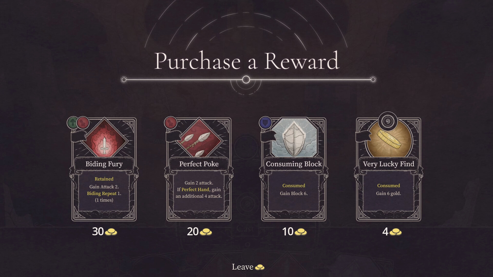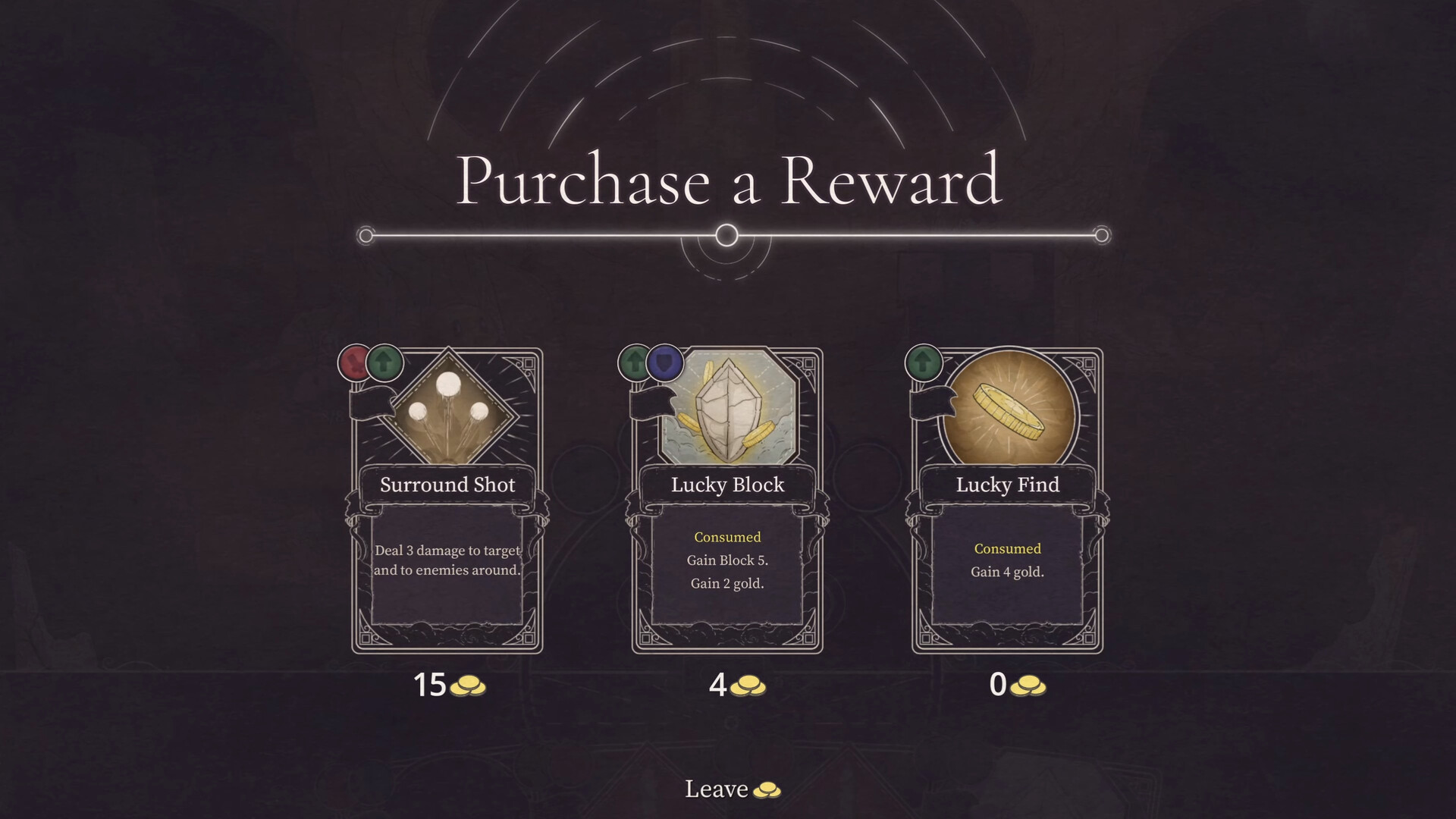 Build your deck by purchasing powerful spell cards with gold! Gold can be collected along your route in the maze-like map or by defeating enemies you encounter along the way. You get an opportunity to shop after each battle, but be on the lookout, there are also hidden shops throughout the maze!