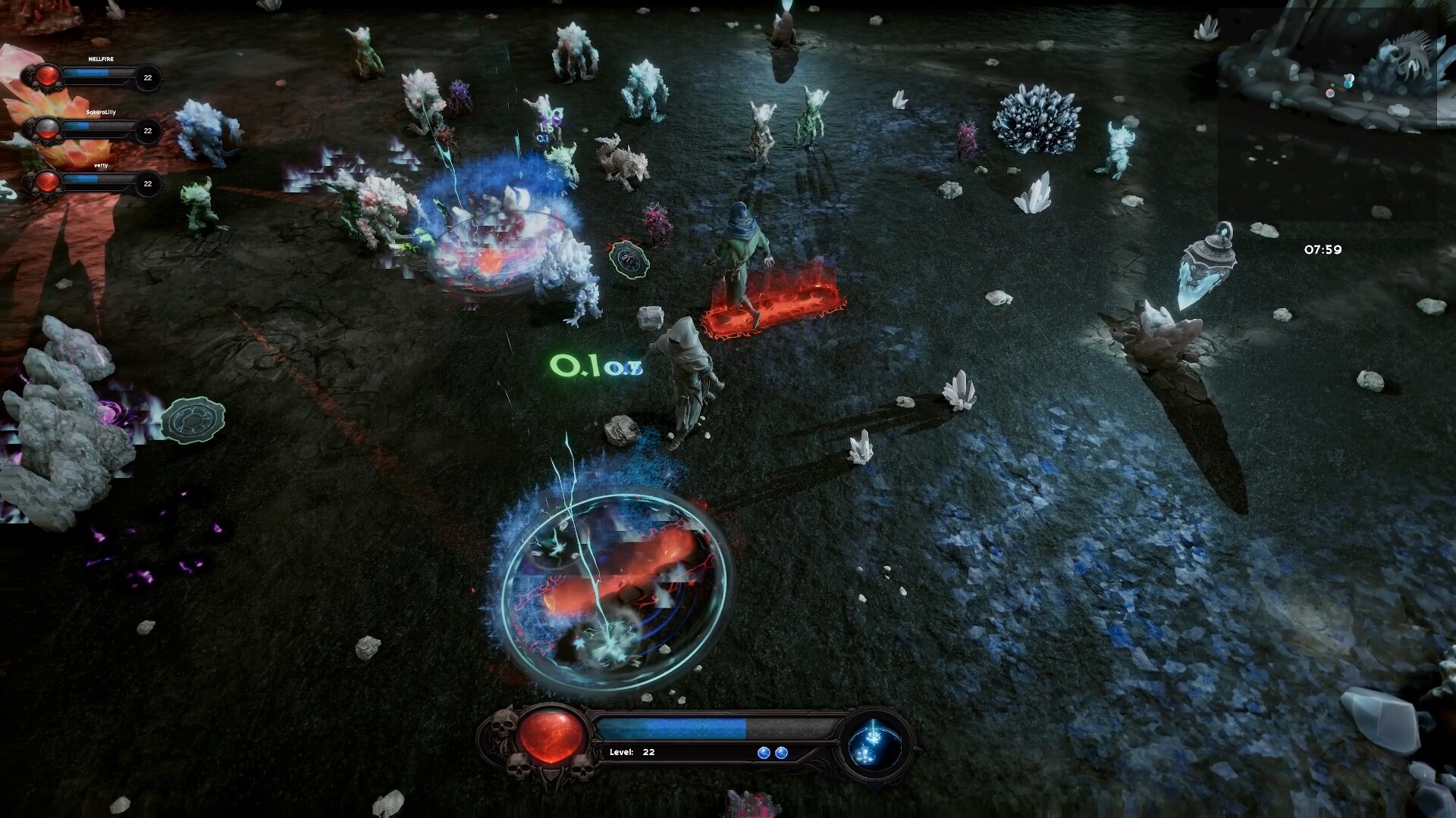 Every spell can trigger multiple other spells on hit, expiration or cast, giving a never ending list of combinations.