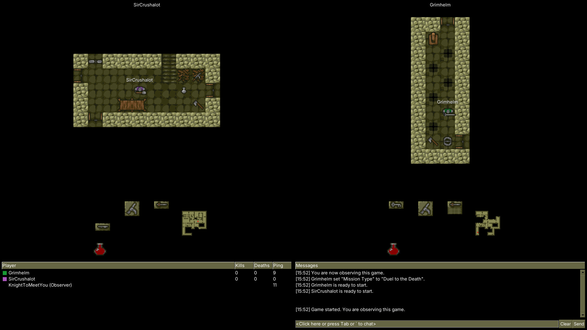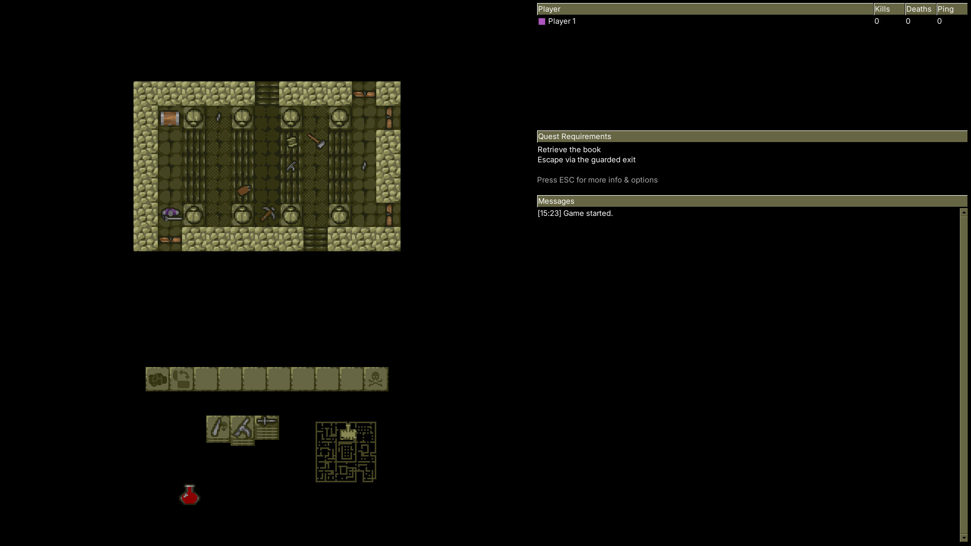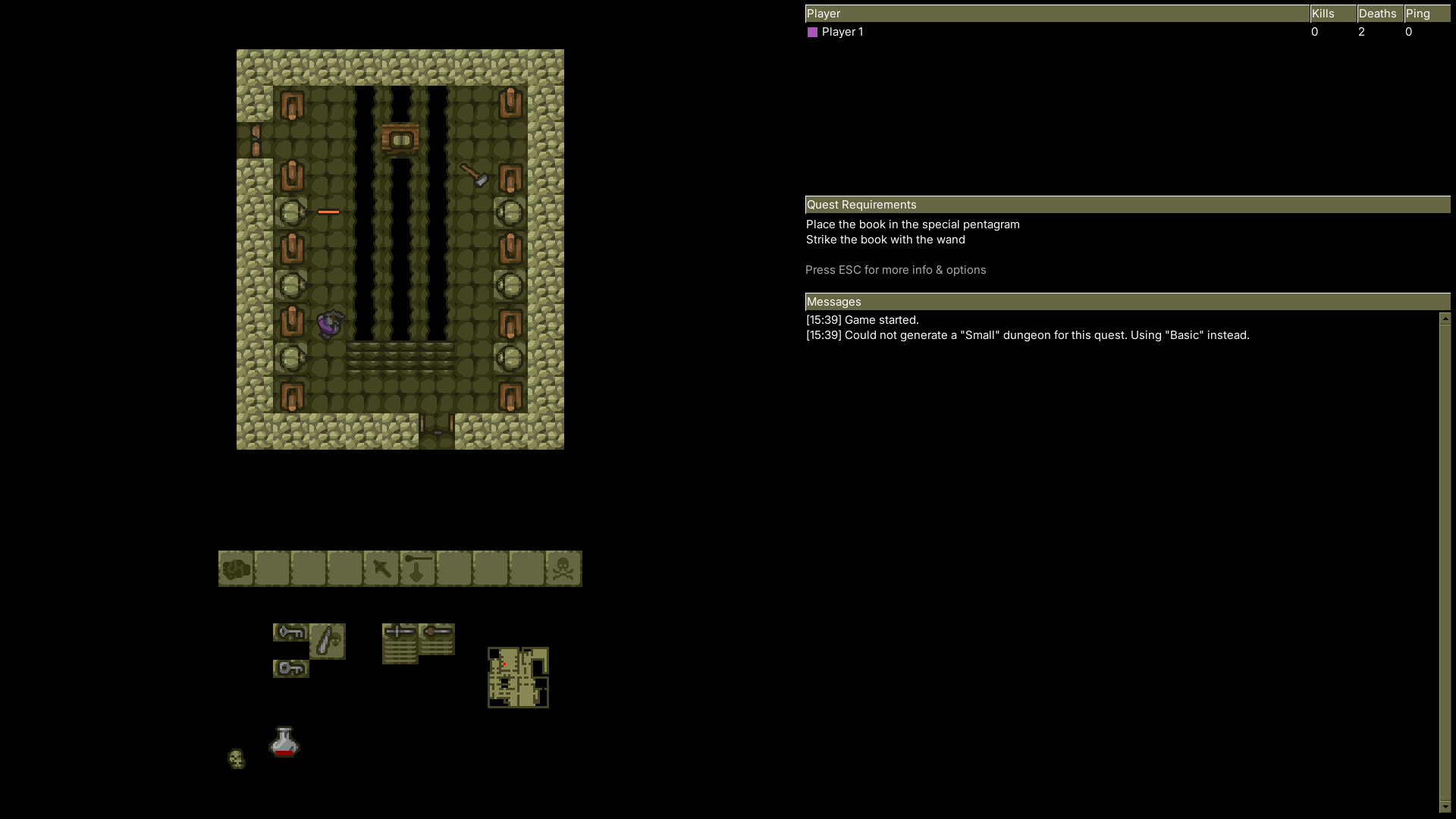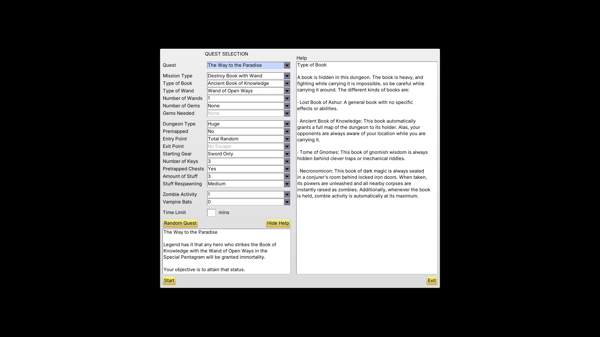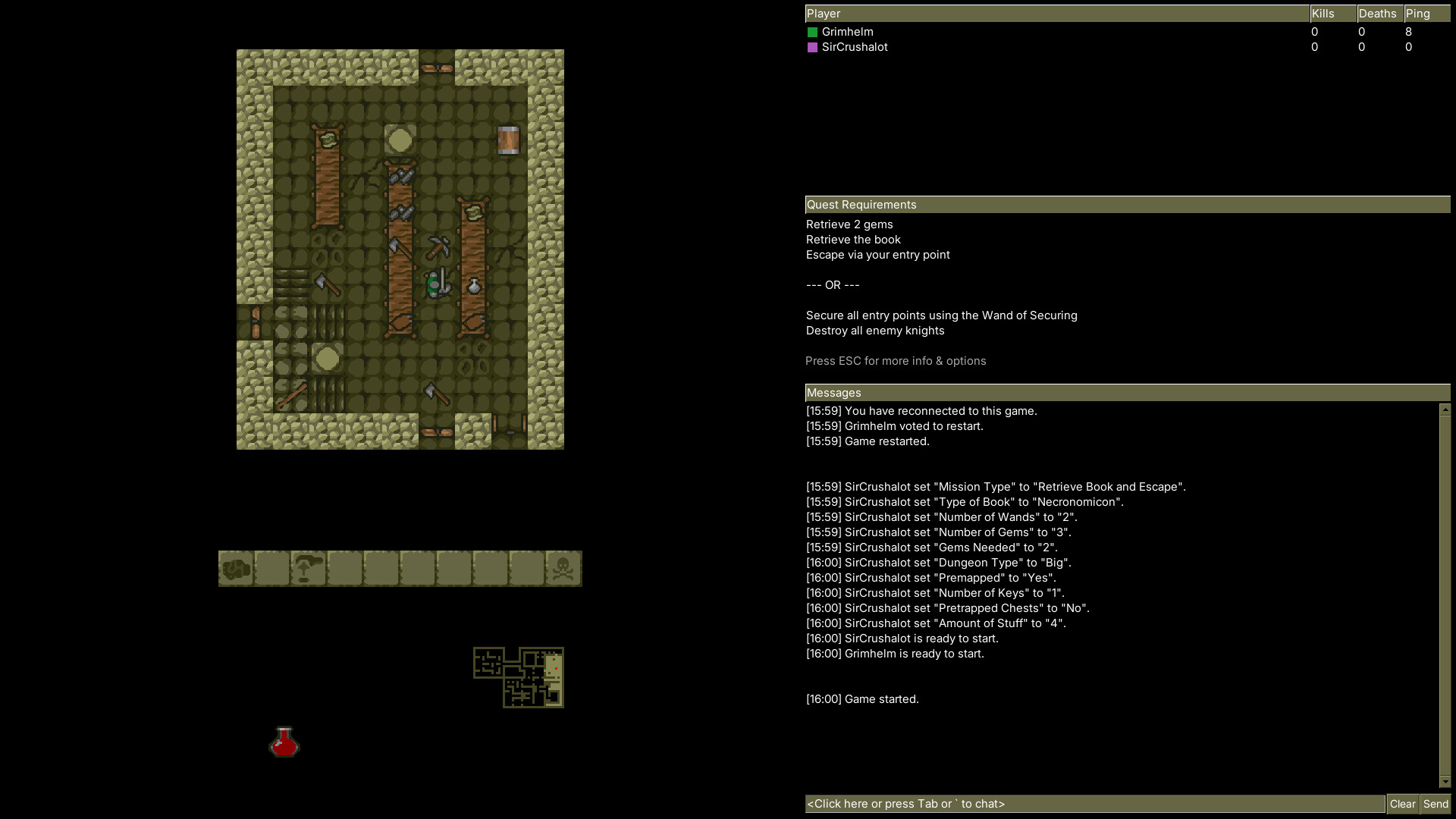 Other quests include racing to the dungeon exit, fighting a duel to the death against the enemy knights, or destroying an ancient Book using a magical Wand.