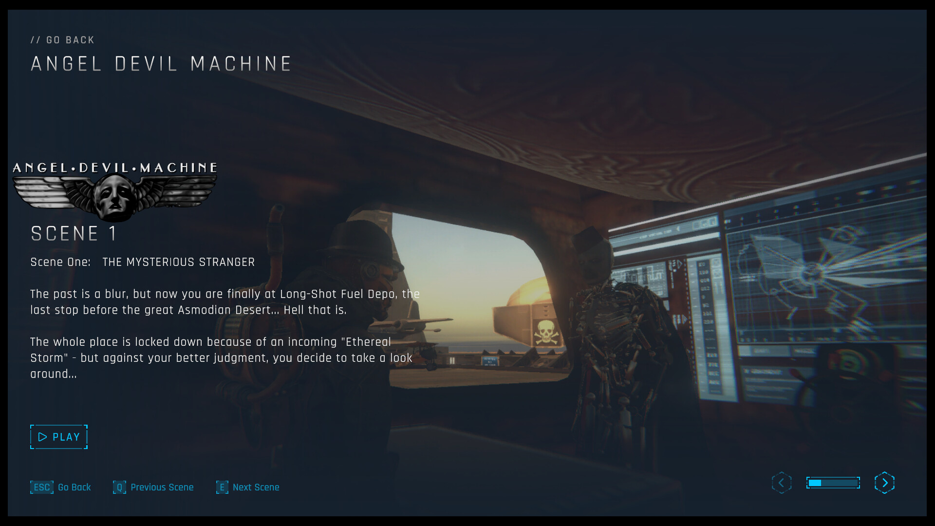 A Dieselpunk/Cyberpunk short-play (20min story play-time) with great replay-ability and massive exploration awesomeness!