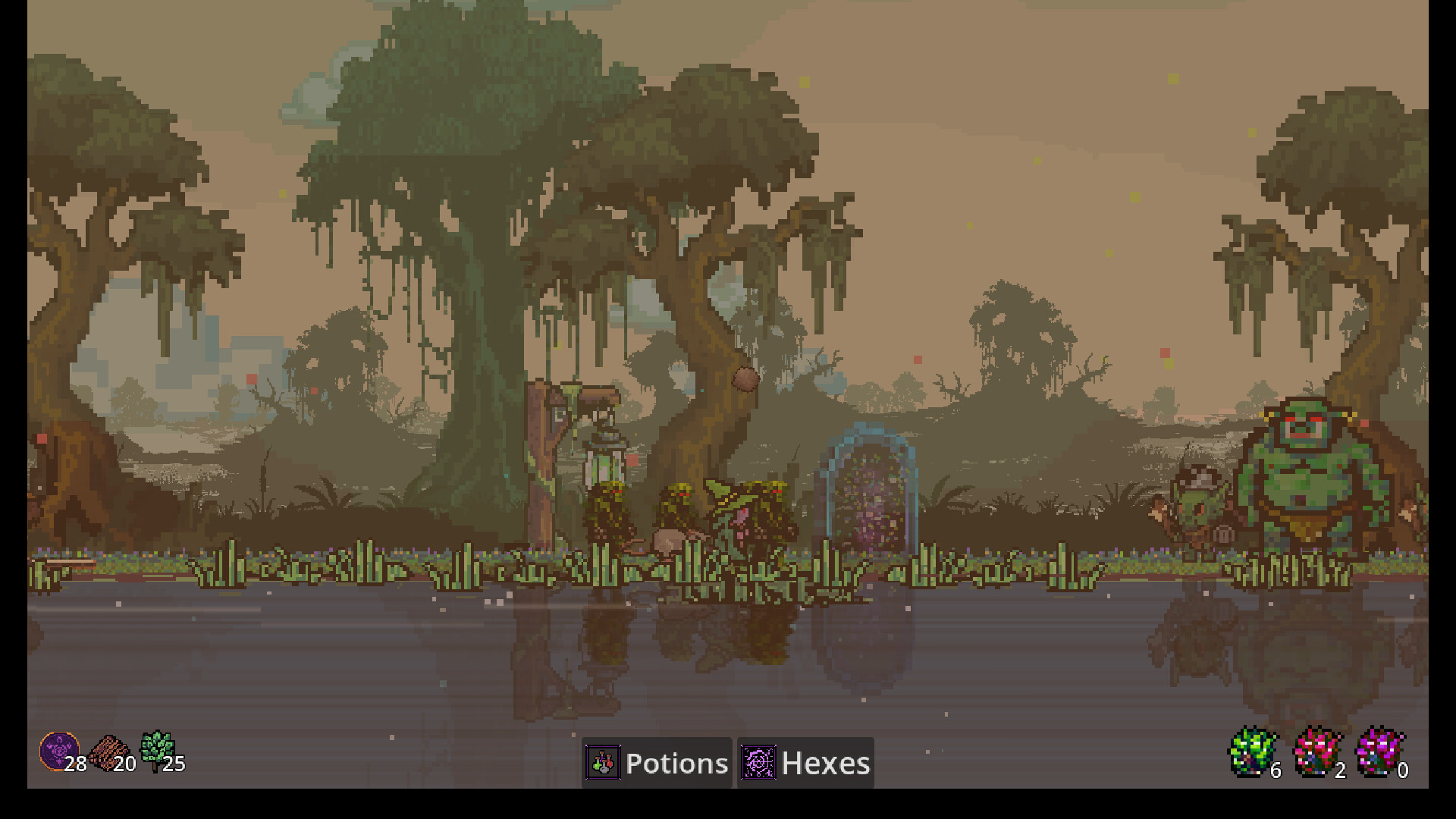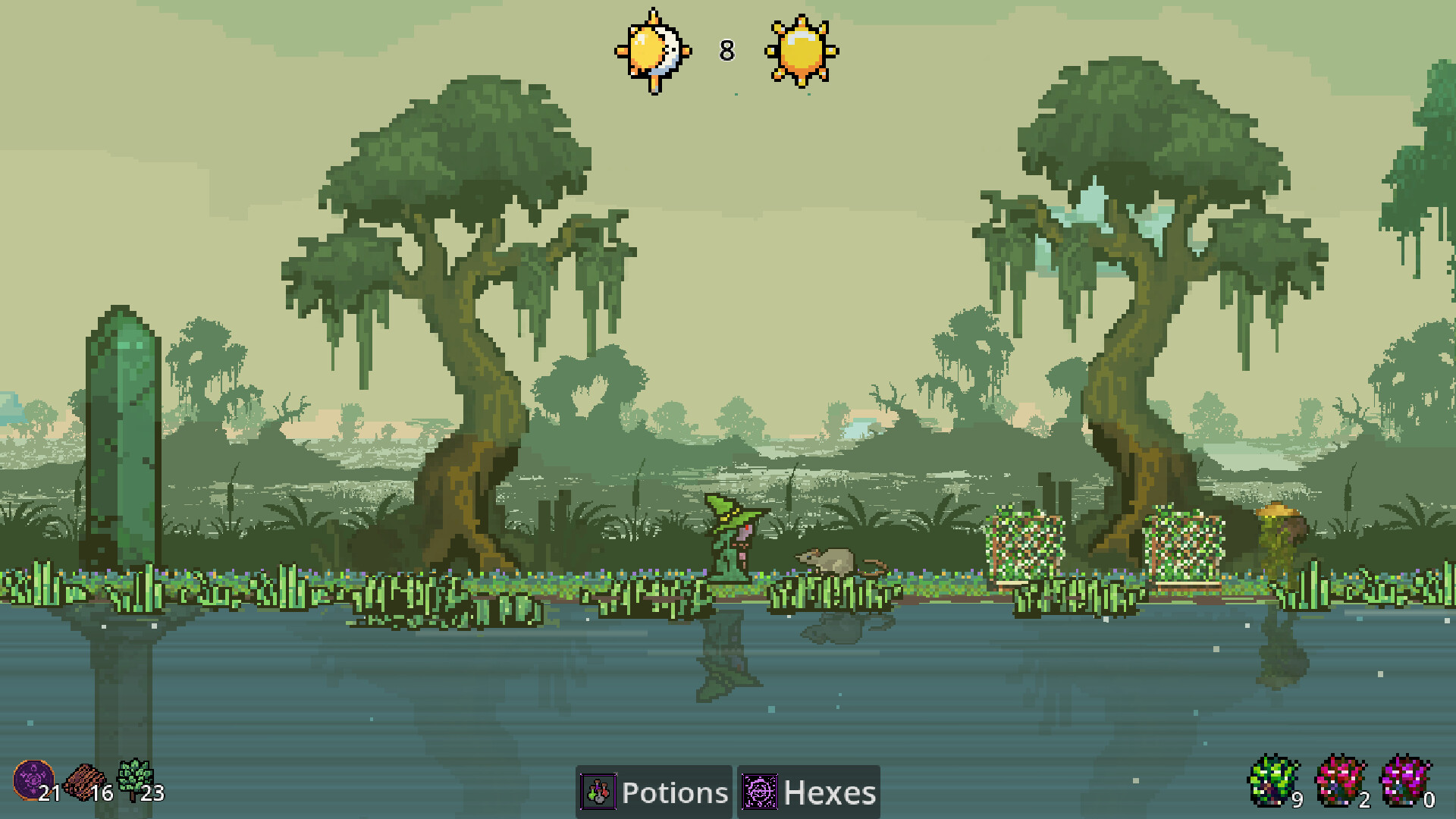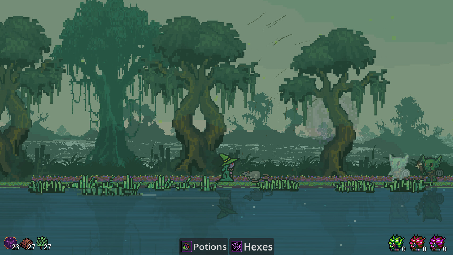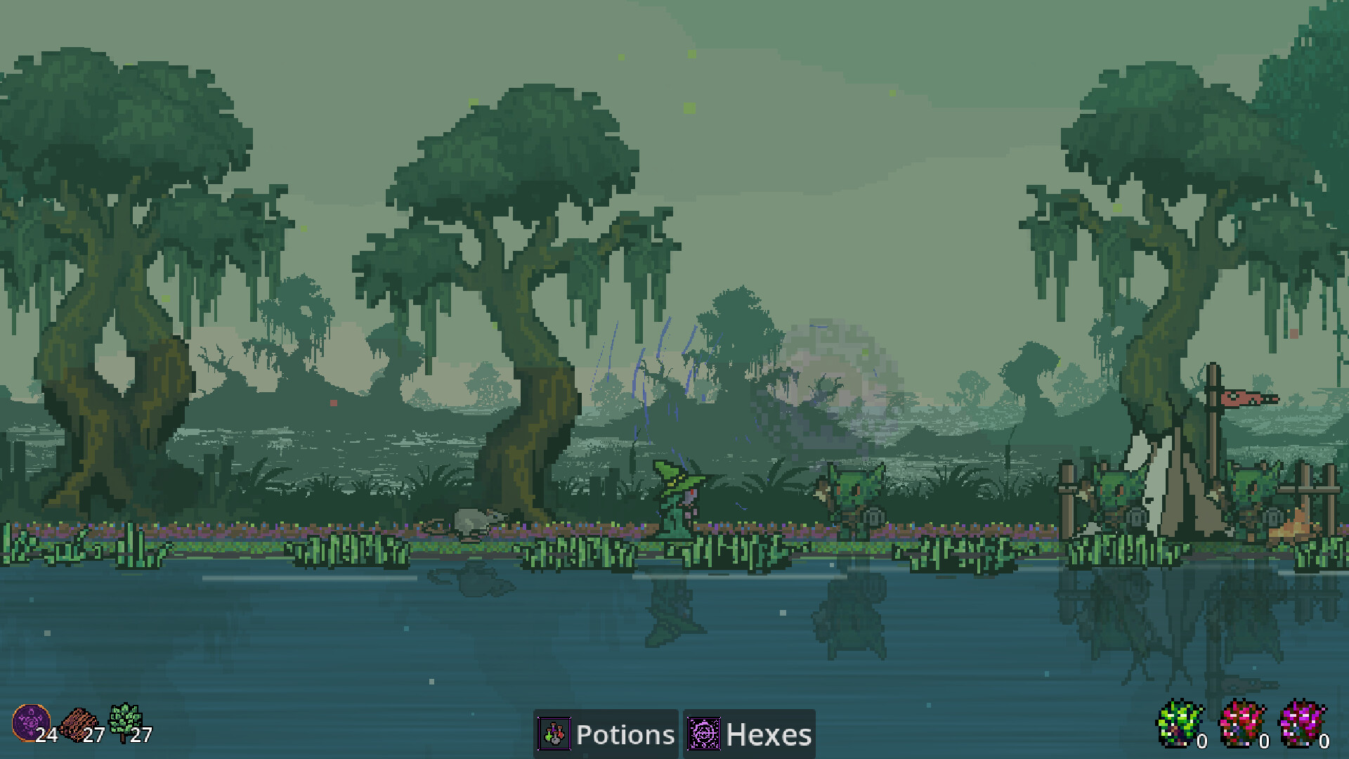 Bubble the Witch and Squeak the Rat try to defend and reclaim their swamp from nightly goblin raids in this 2D side-scrolling pixel art game.