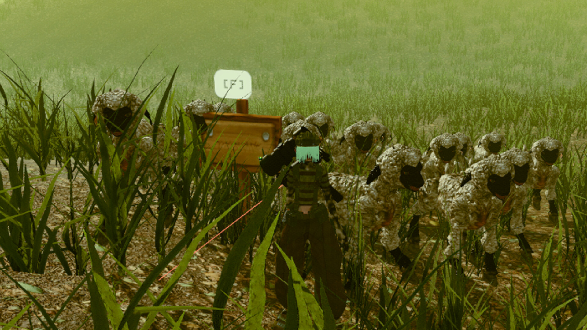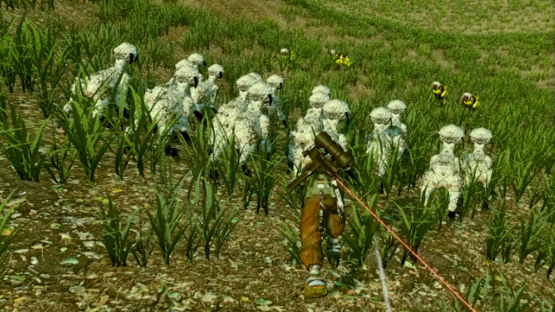 Your flock is both a source of income and your primary weapon. Design your own flock and guide your NiMALs with a GunCane, a weaponized shepherd tool that communicates with them through short radio bursts. This herding influence shapes flock movement and temporarily overrides their pre-programmed functions. The GunCane’s effect weakens with distance.