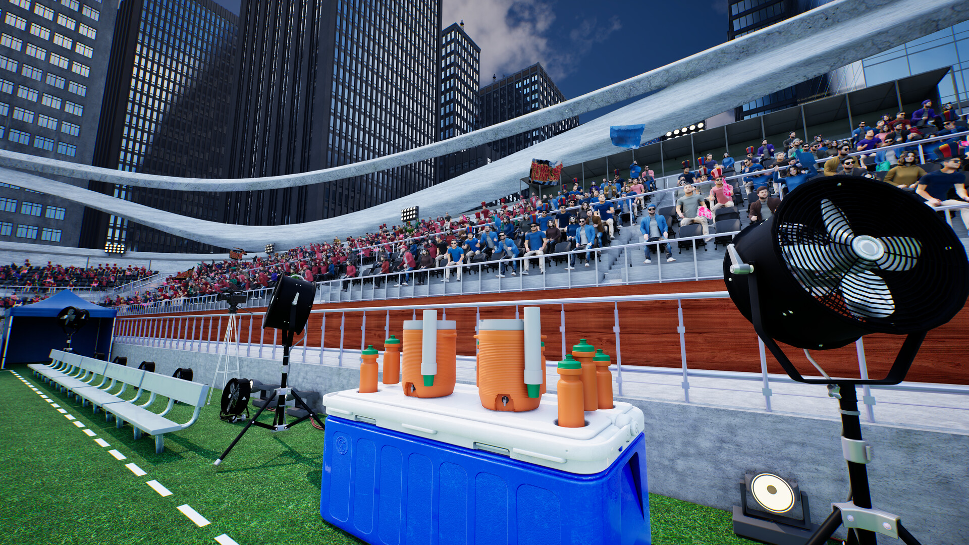 Dynamic crowds, fireworks, and an announcer give big moments the noise they should have. A touchdown should feel loud. A pick should turn the whole place. A late stop should sound like everybody in the stadium saw it.