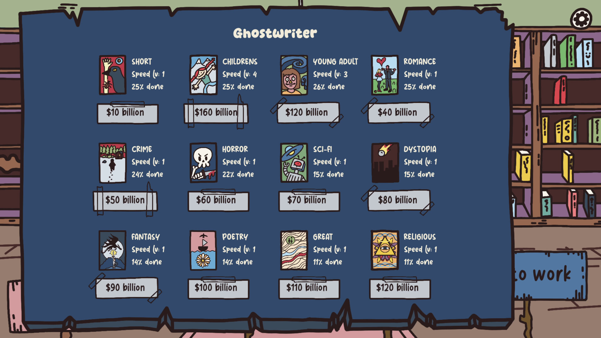 World's Greatest Author is an incremental clicker game with hand drawn graphics.