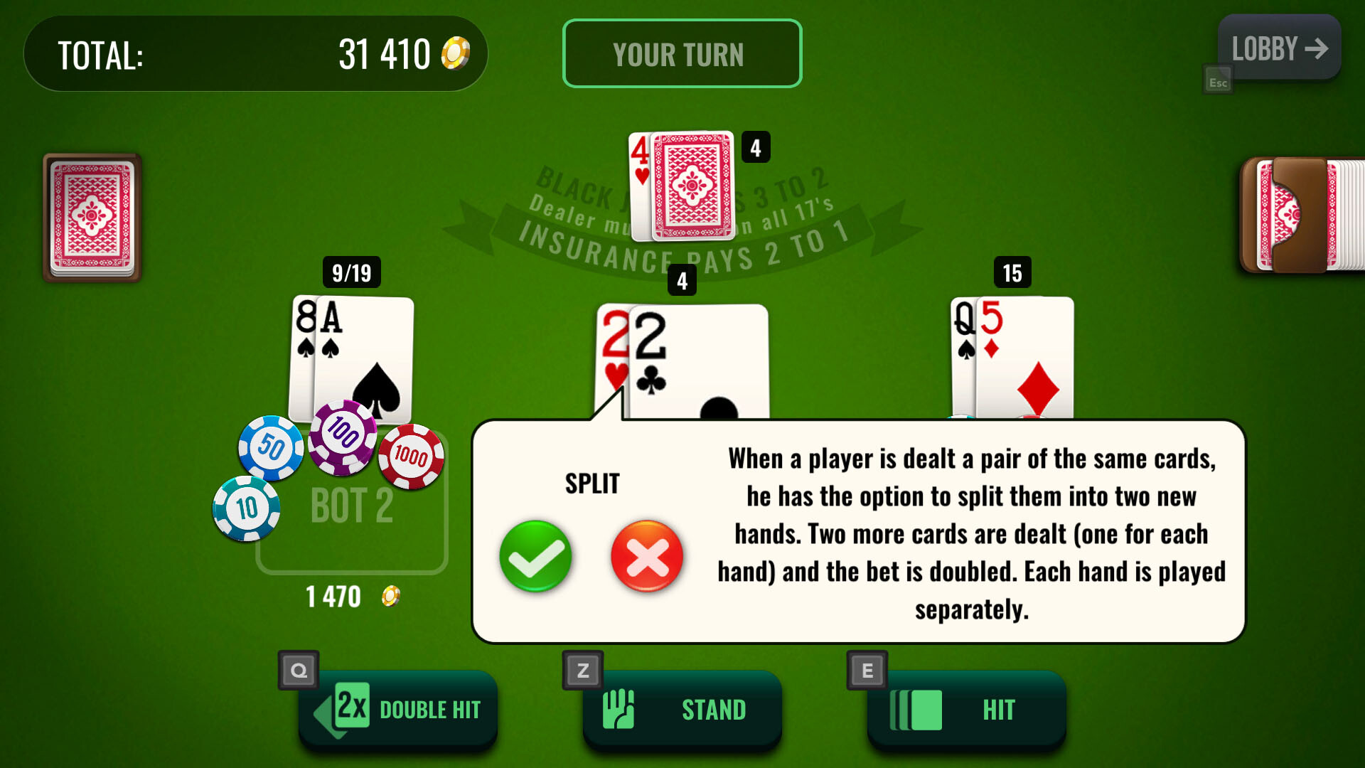 Build your strategy, improve your skills, place daring bets and experiment to win. Featured casino games include Poker, Roulette, Blackjack and Slots, each with unique mechanics and standard rules that have made them timeless staples of the gambling scene. Play against computer-controlled opponents and unlock cool rewards as you progress! Are you ready to go all in?