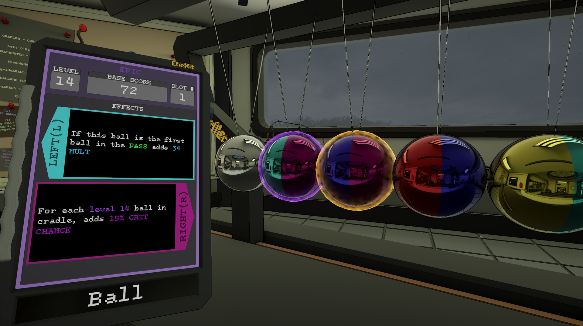 Build a Newton's Cradle - using synergies between balls to maximise your score in order to escape the lab. You will not be alone, a series of voice memos from the Dr Ballkovitch himself will help and hinder your journey.