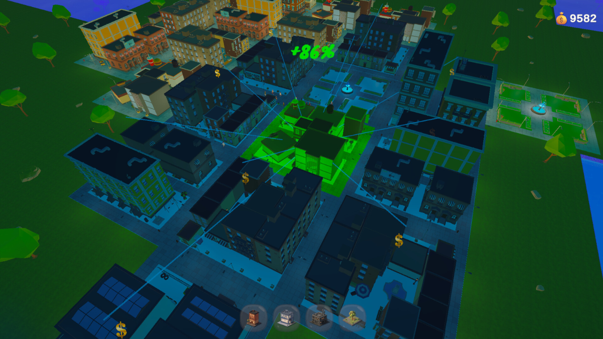 As your city grows richer, new land can be purchased, giving you more space to build and optimize.