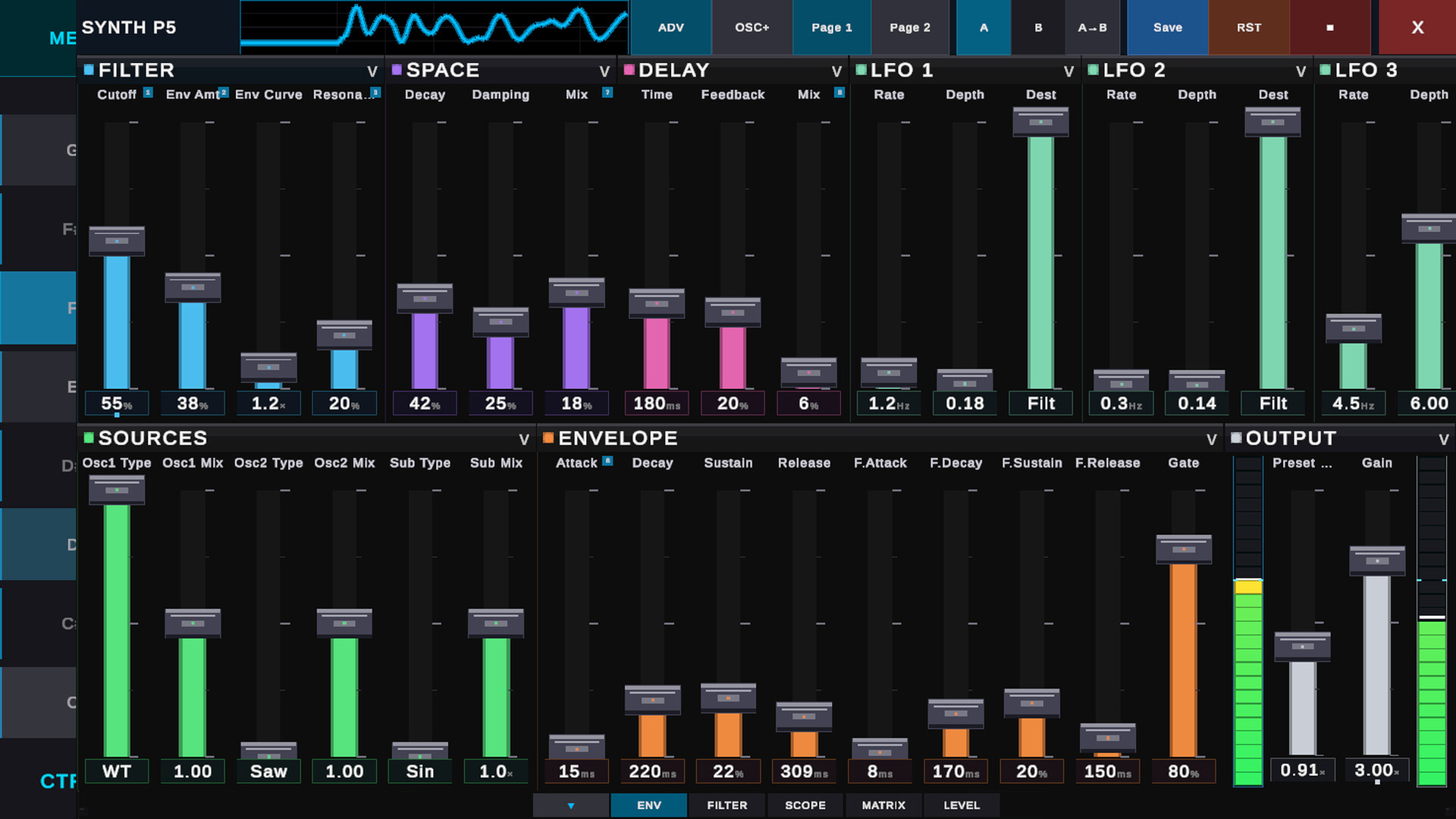 3개의 LFO, 듀얼 엔벨로프, 아날로그 드리프트 모델링
