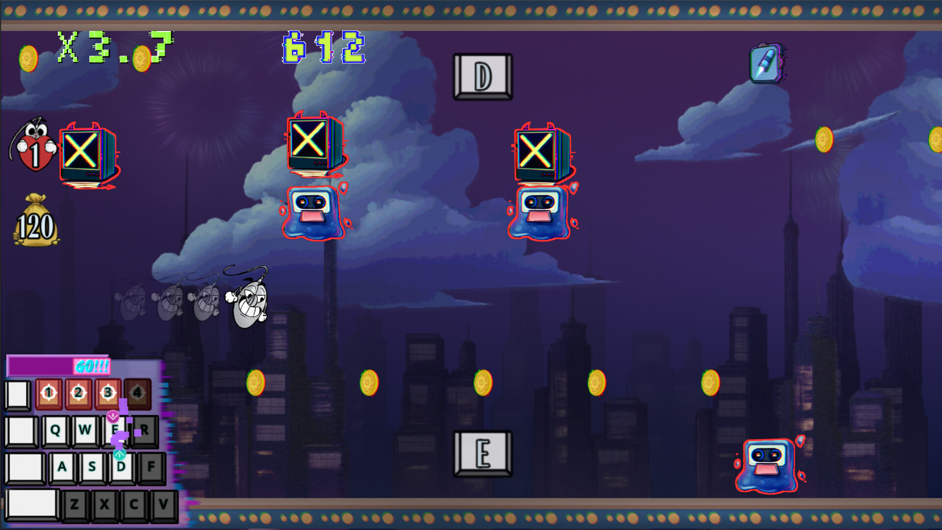 즉, 여러 종류의 적과 장애물에 능숙하게 대응해야 할 뿐만 아니라, 현재 키배치 상태를 계속 확인하며 결정적인 순간에 잘못된 키를 누르지 않도록 주의해야 합니다.
