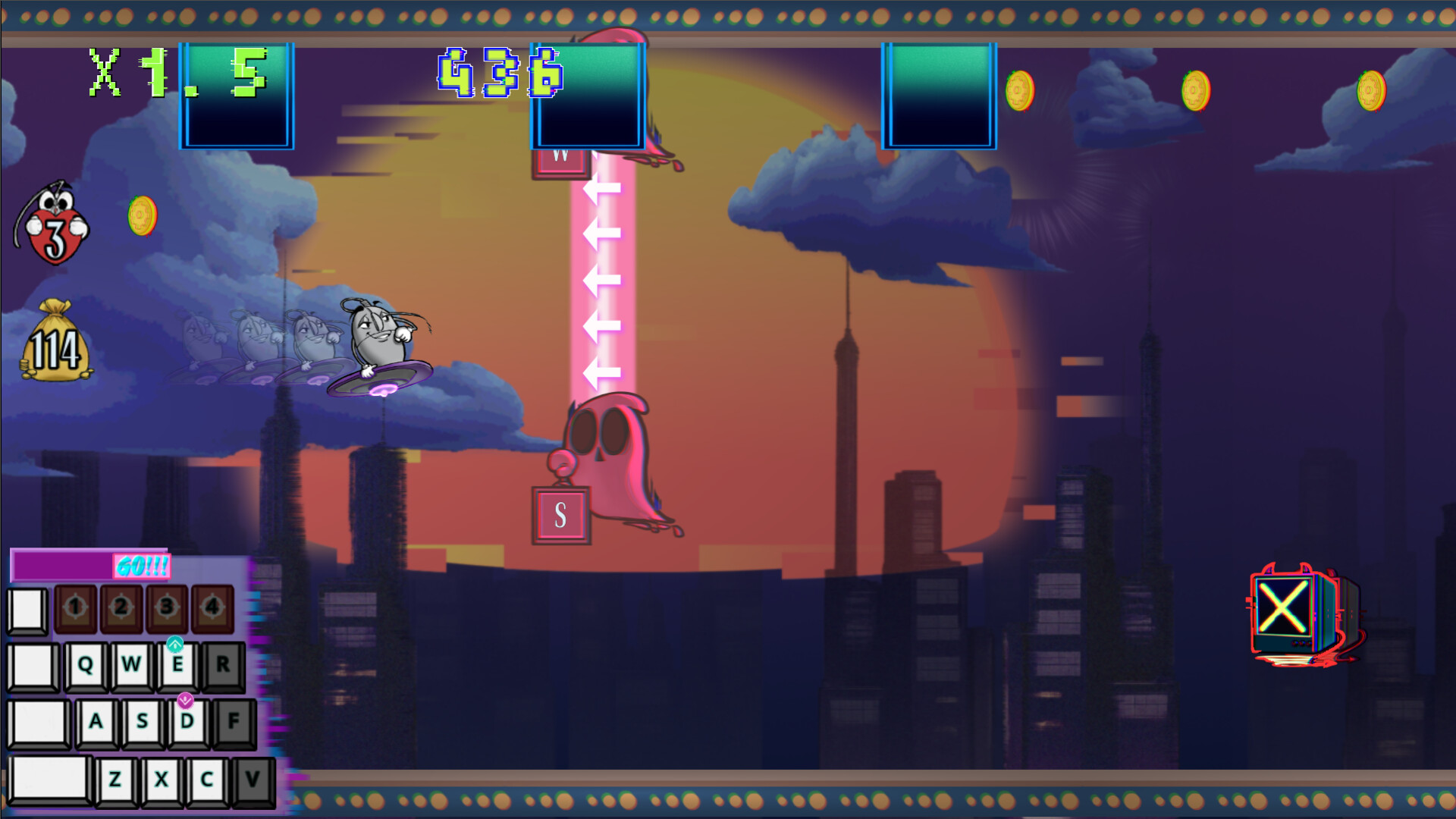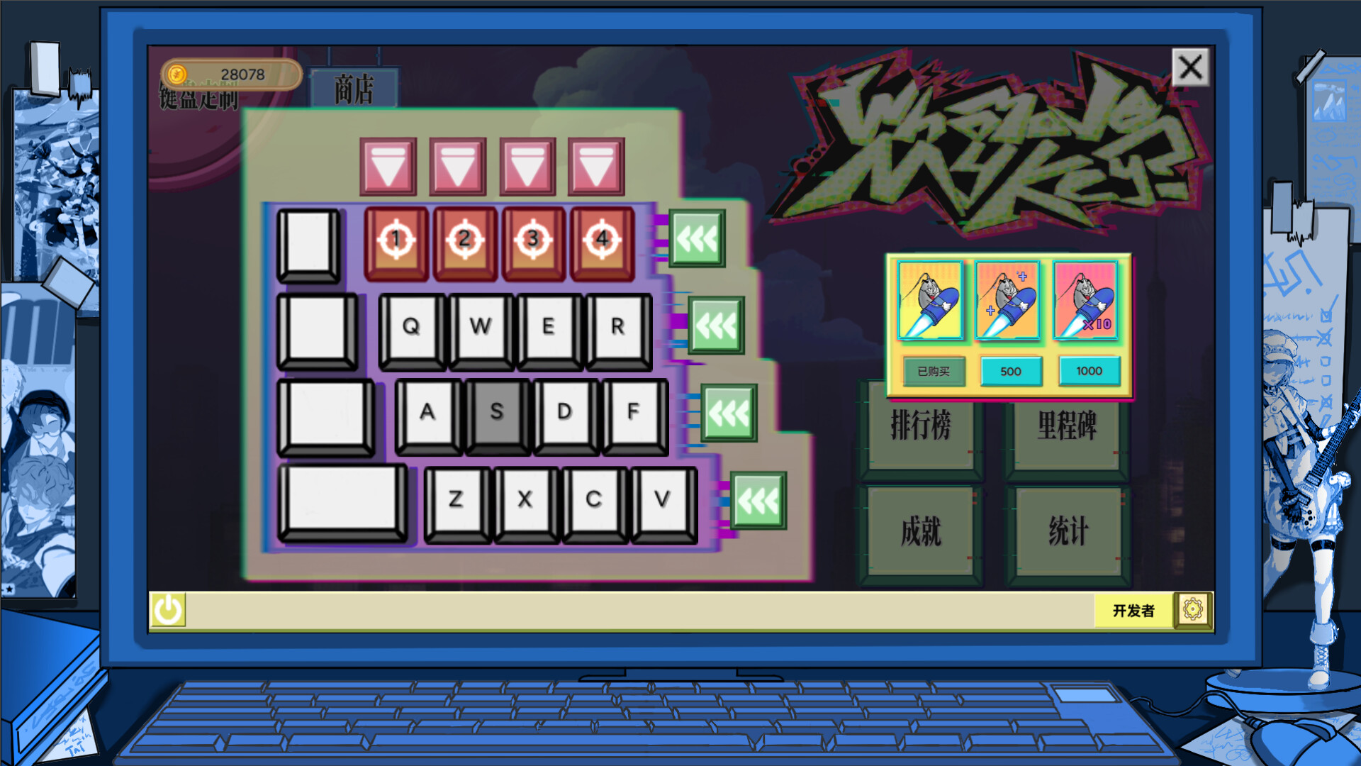 게임에서는 키배치와 업그레이드가 키보드 형태로 표시됩니다.