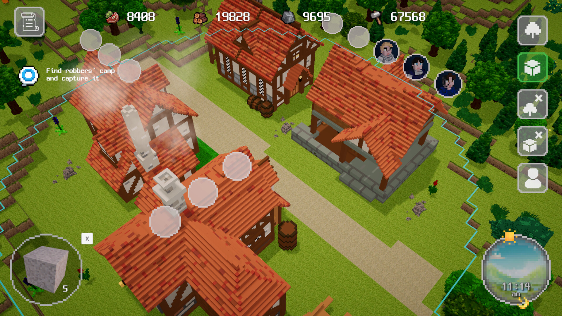 As you develop your settlement, you’re free to shape it however you like. With a variety of decorative elements and the ability to modify the terrain by placing or removing blocks, creativity plays a key role in how your world evolves.