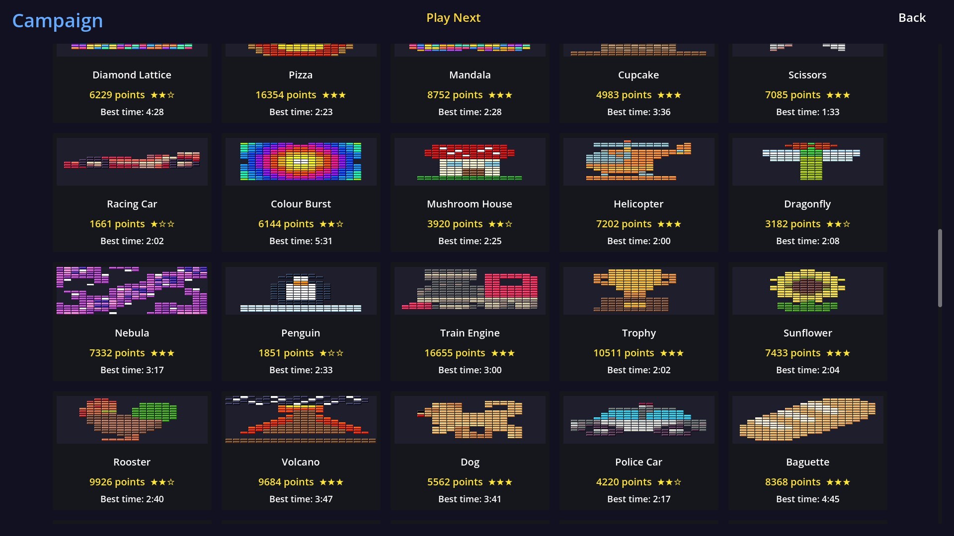 If that's not enough, an Infinite mode offers near limitless procedurally generated playfields for those 5 minute breaks from work when you want to relax. Bookmark and share your favourite random seeds, and compare your score and time against others on the daily seed.