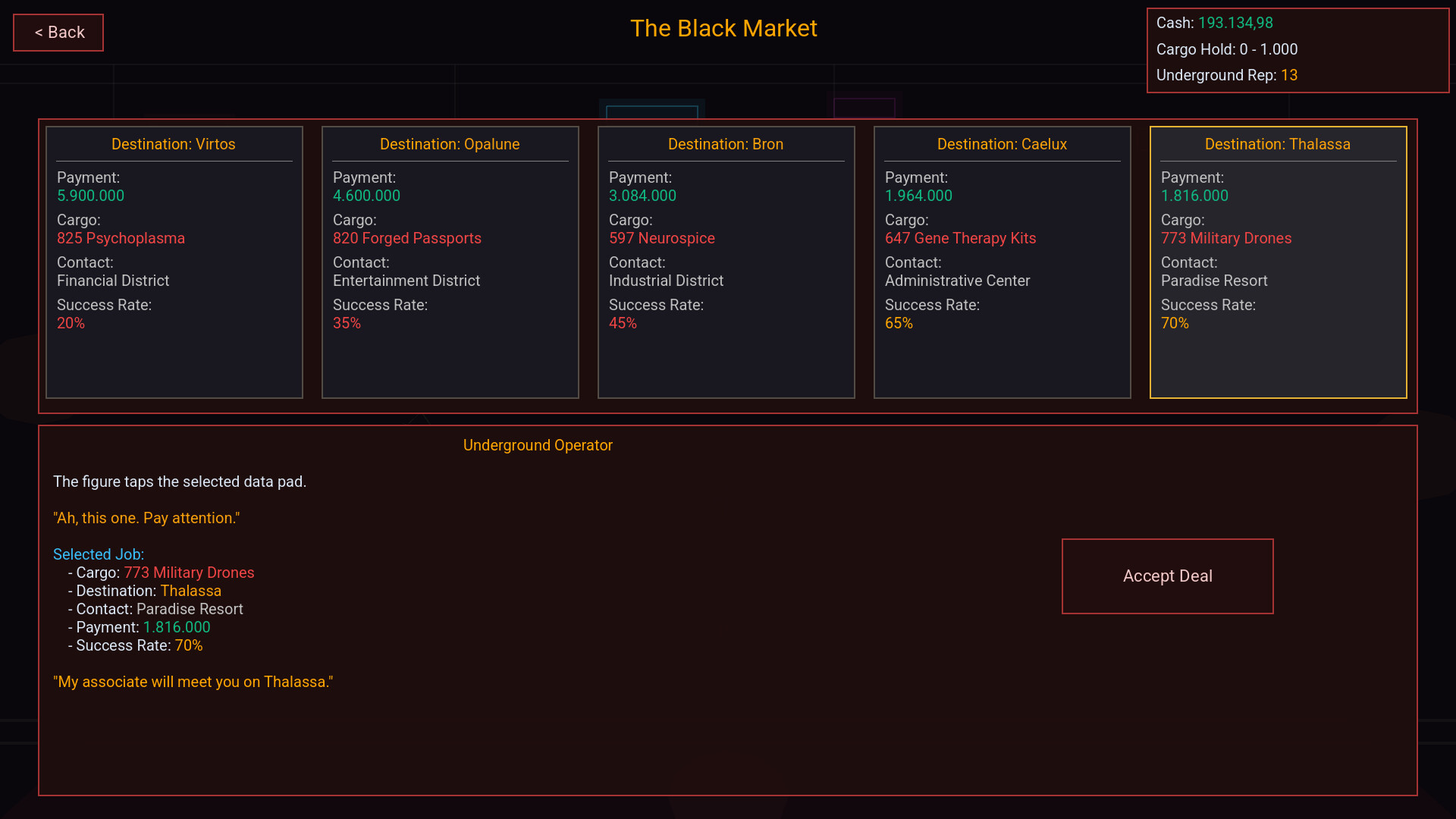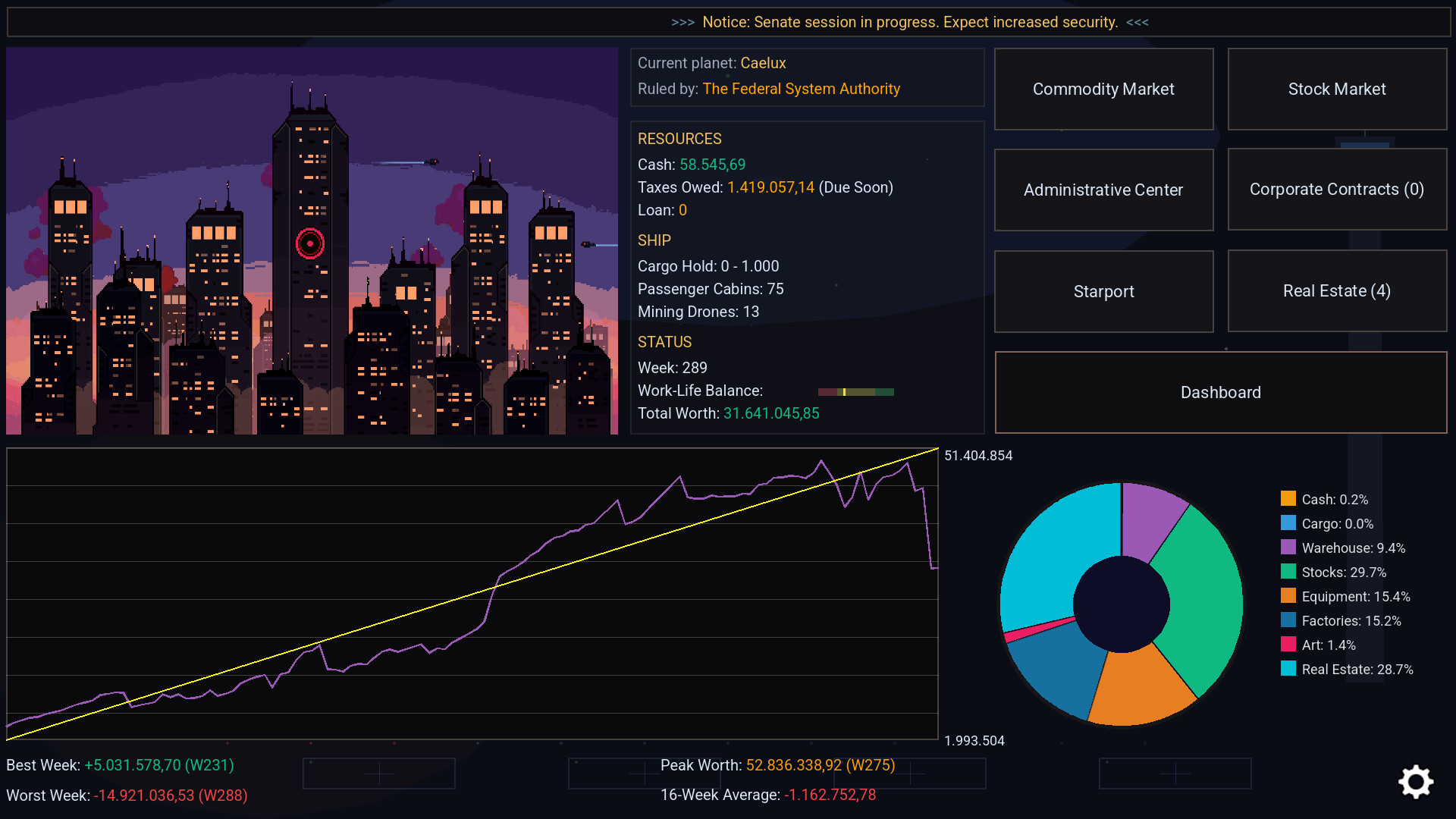 Travel between the planets looking for opportunity and the most optimal way to build your business empire.