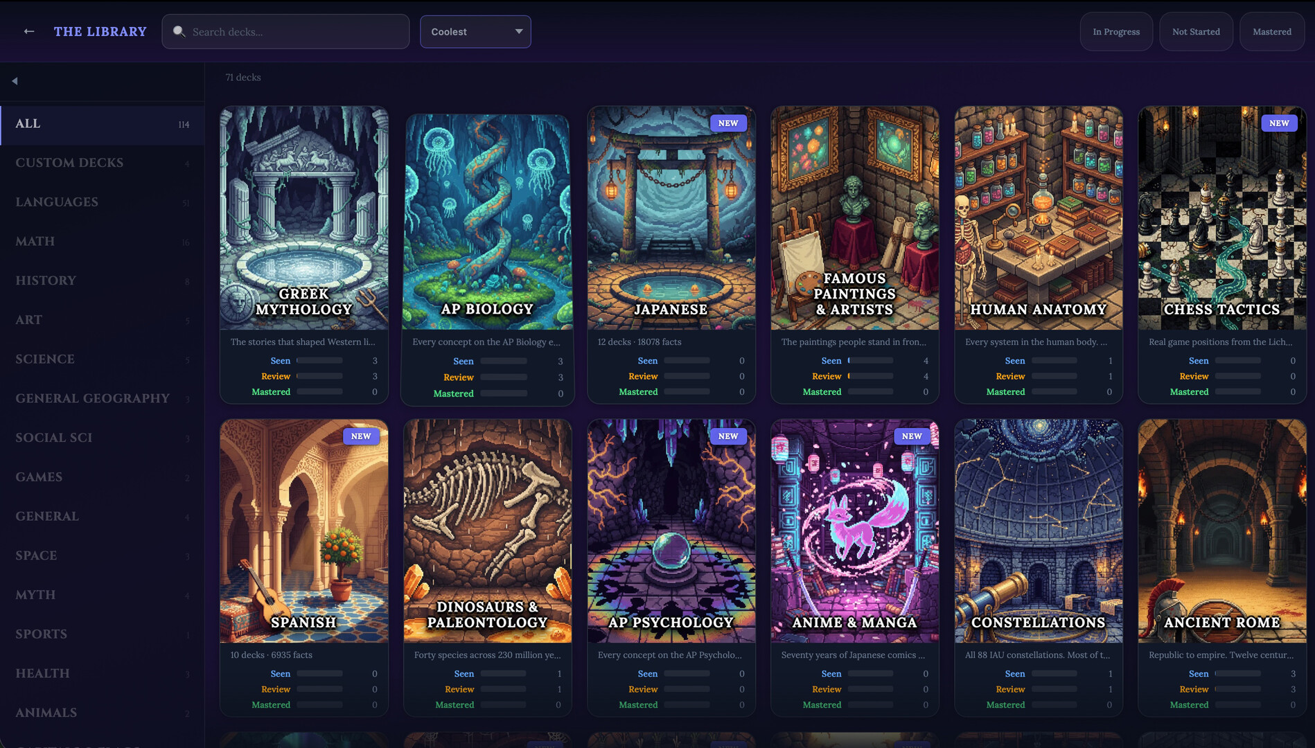 - And more Famous Paintings, World Flags, Medical Terminology, Computer Science, Philosophy, Ocean Life, World Cuisines, NASA Missions