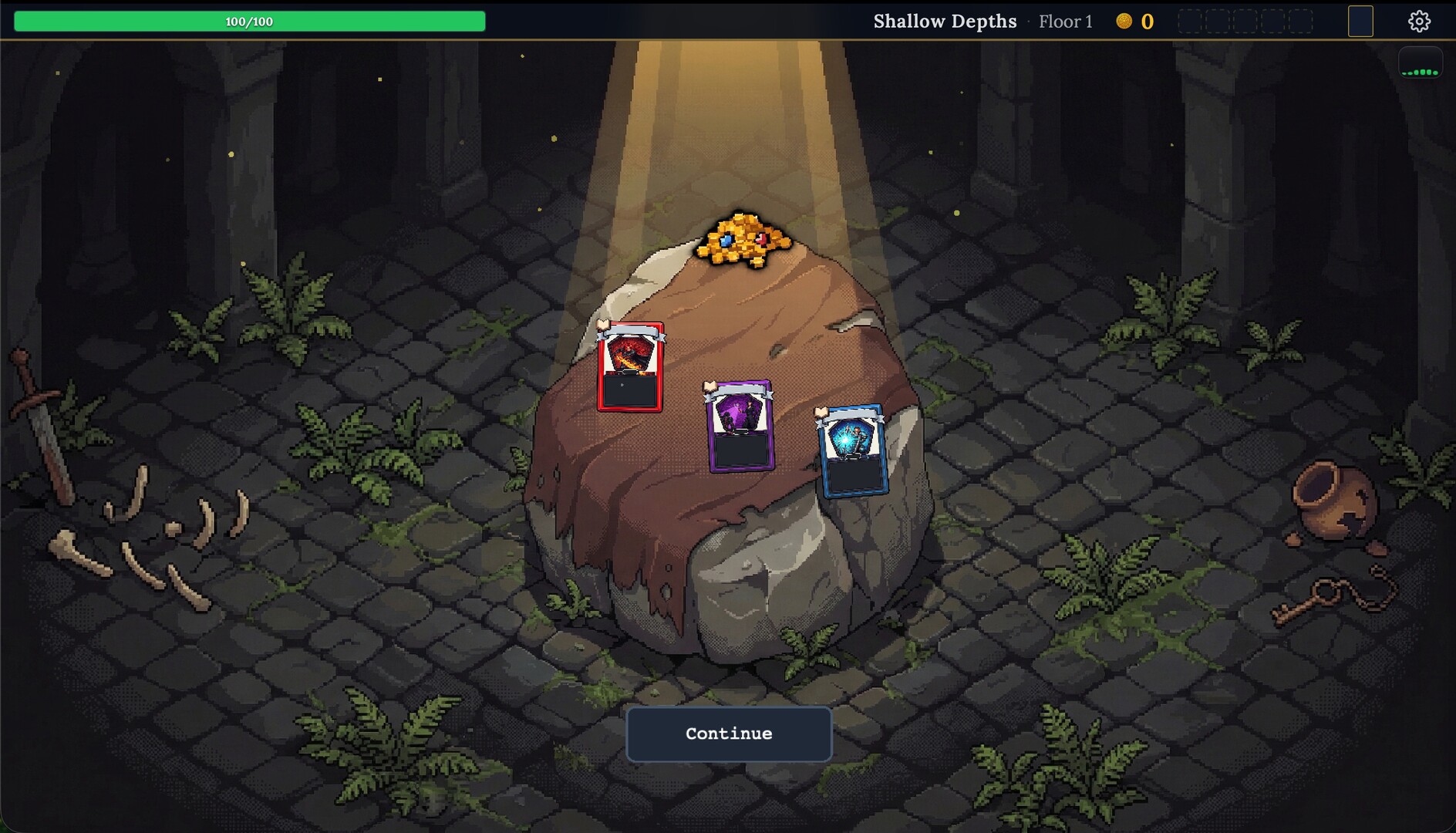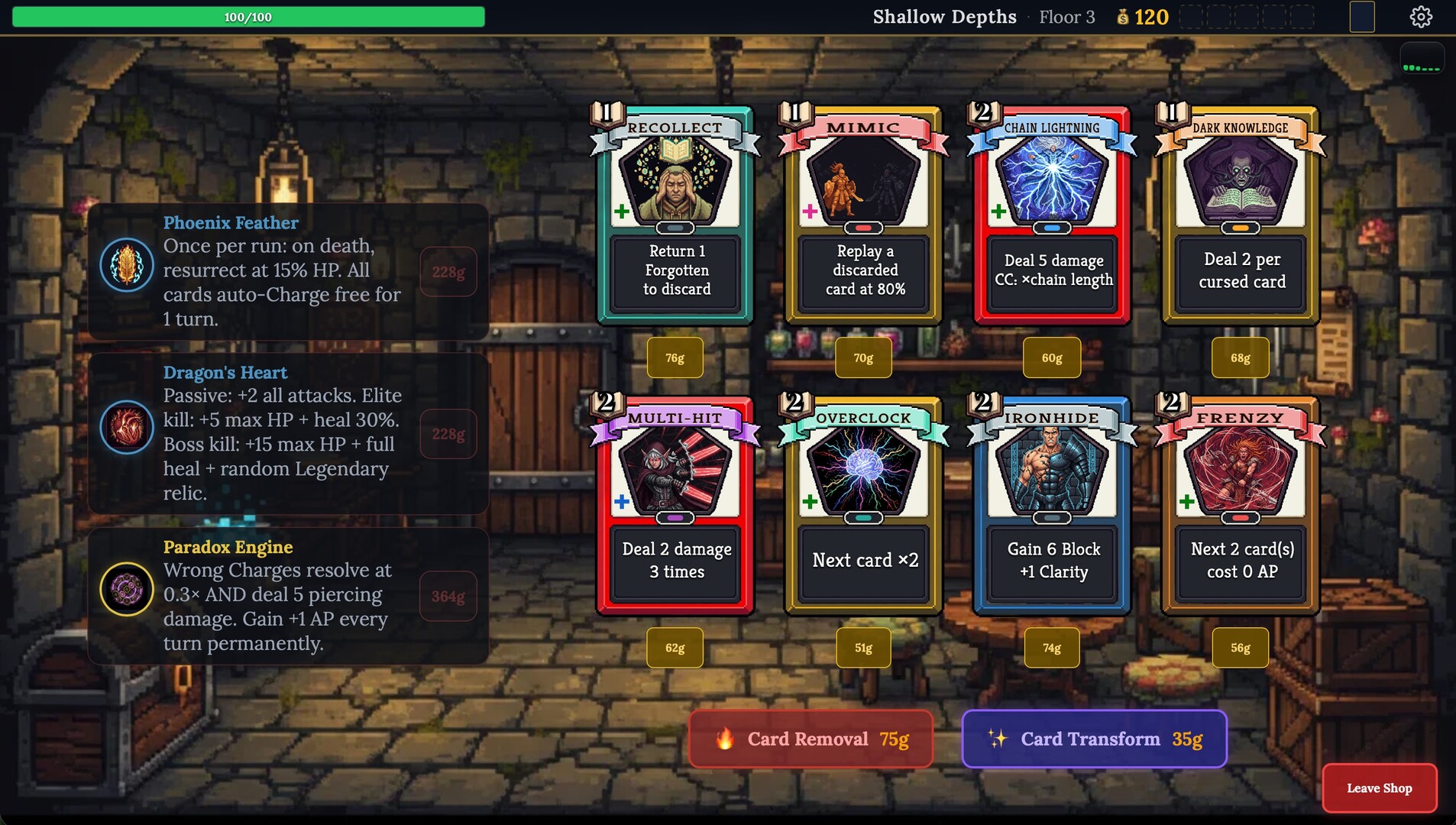 Three regions. Combat, shops, rest sites, treasure rooms, mystery events. The Burning Library. The Wrong Answer Museum. The Riddle Stranger.