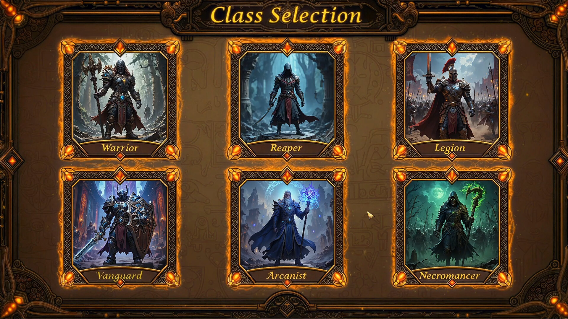 Class-based armies with unique passives and actions