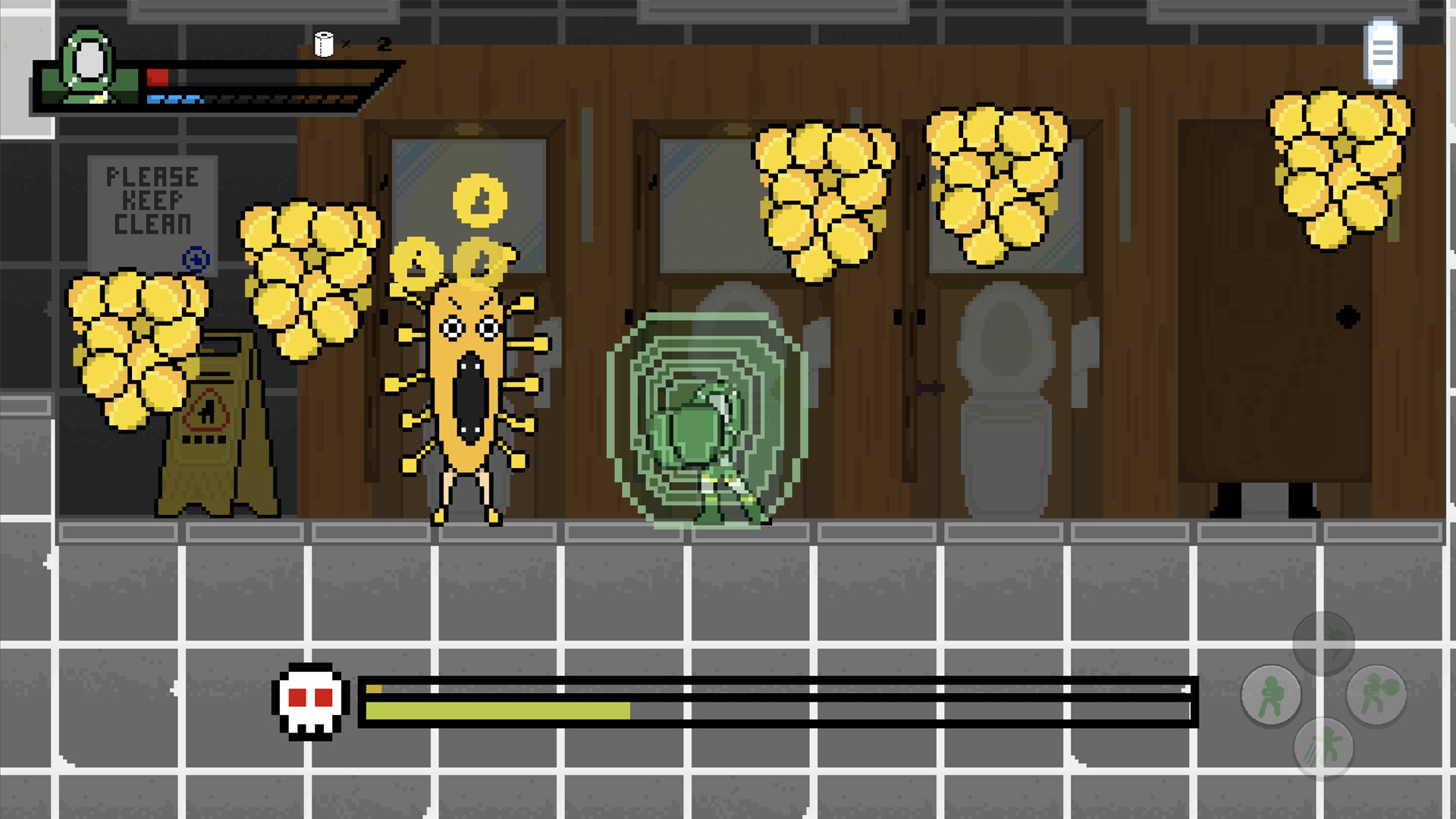 Classic 2D horizontal action platformer. Engage in solitary combat and master your hero's skills to keep every restroom clean and safe. Featuring authentic voice acting and original BGM, enjoy the journey with ORANGER !!